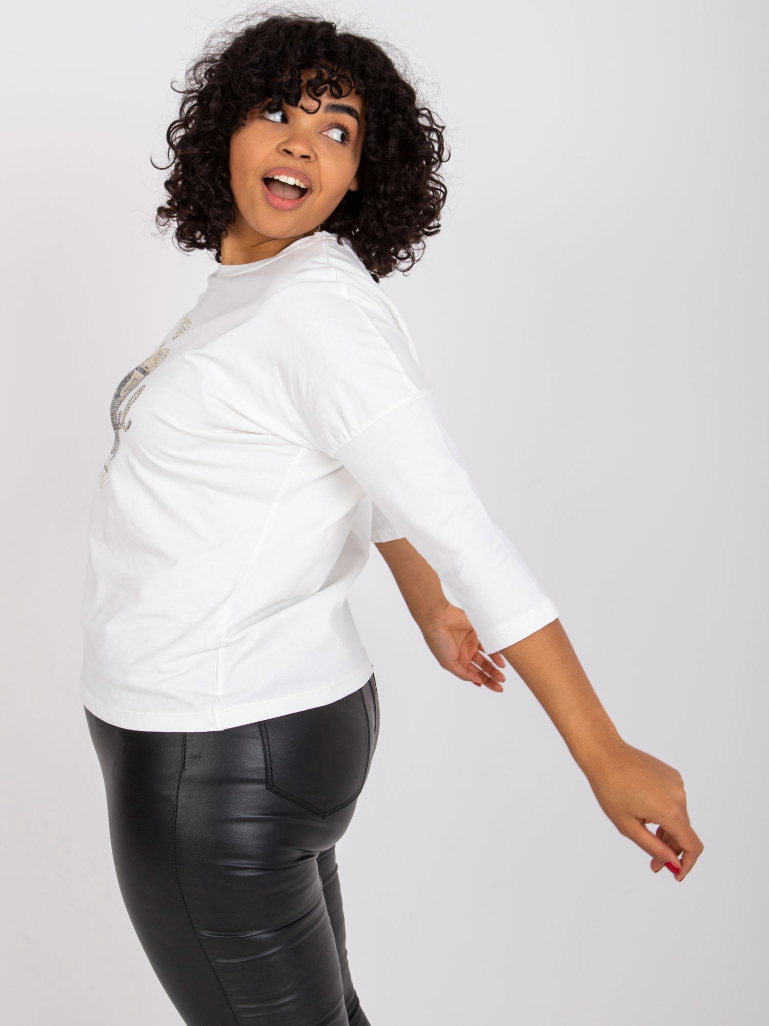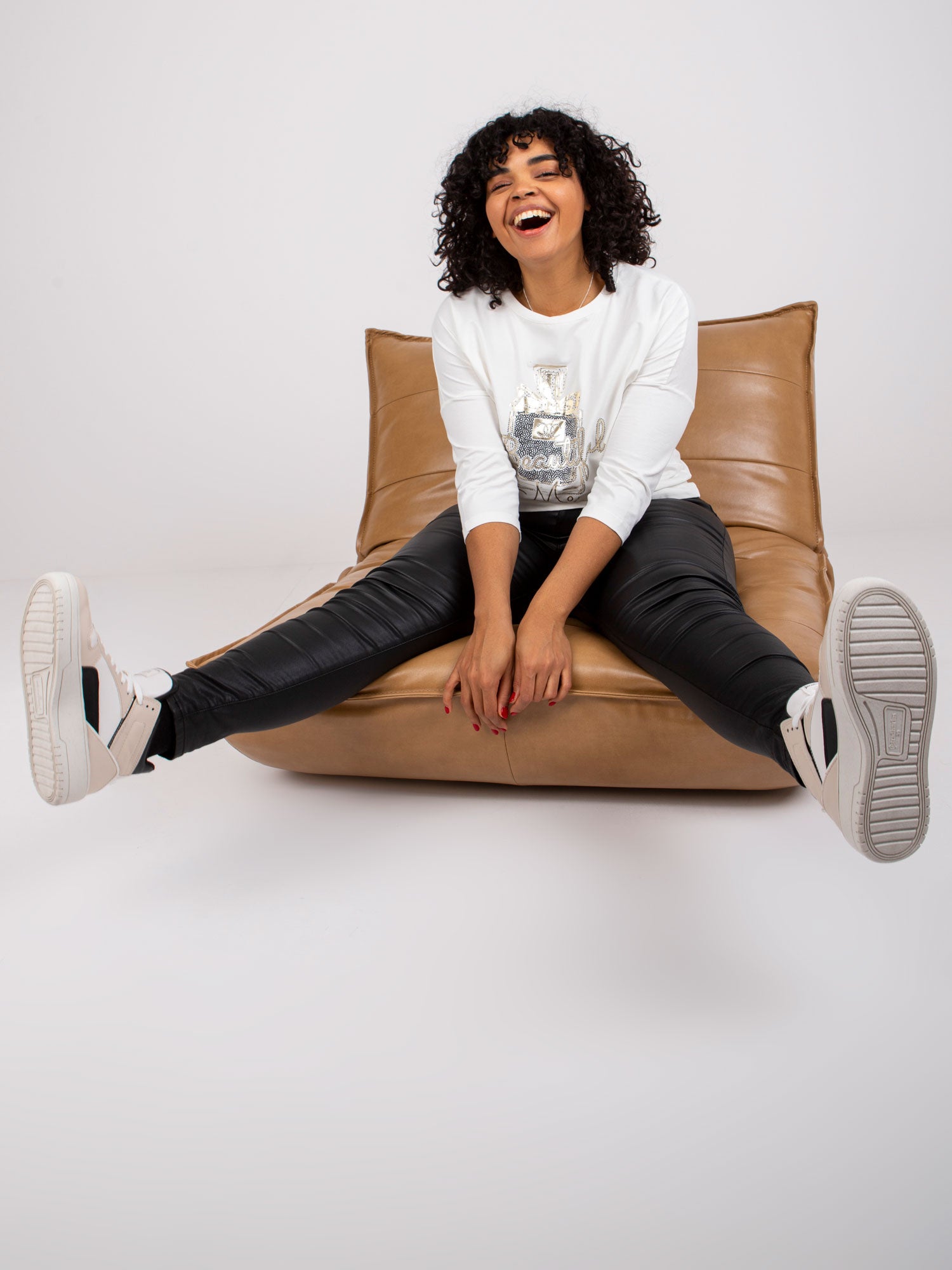 Wymiary bluzki w rozmiarze one size mierzone na płasko: szerokość pod pachami - 62 cm, długość całkowita - 63 cm, długość rękawa - 40 cm.