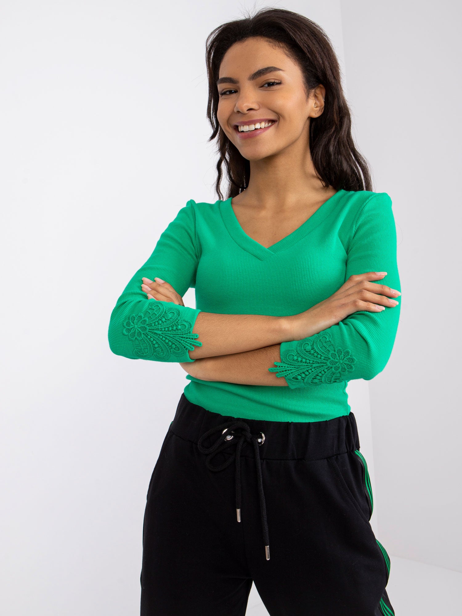 Wymiary bluzki w rozmiarze S mierzone na płasko: szerokość pod pachami - 37 cm, długość całkowita - 61 cm, długość rękawa - 43 cm.