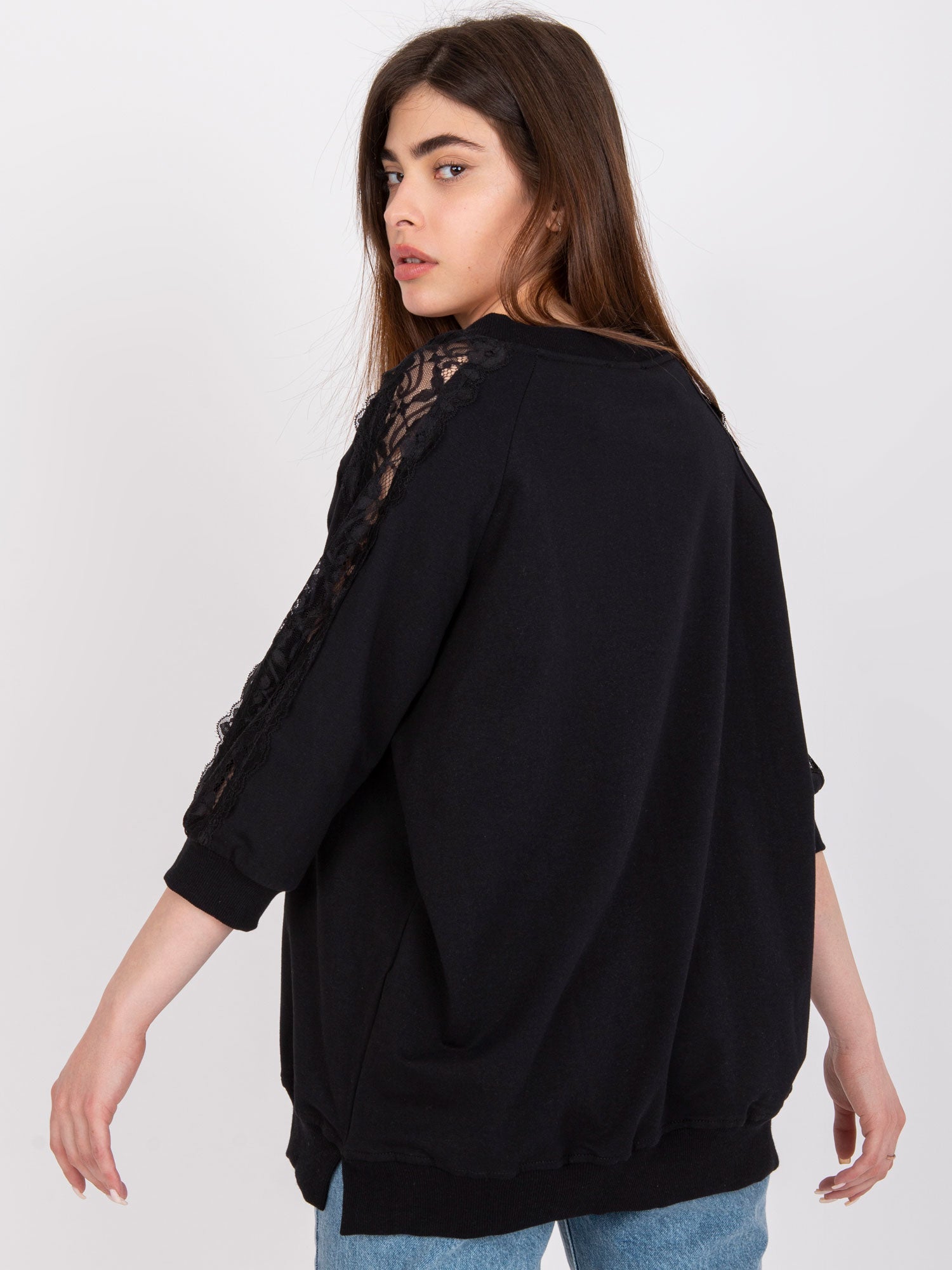 Wymiary bluzki w rozmiarze S/M mierzone na płasko: szerokość pod pachami - 61 cm, długość całkowita - 71 cm, długość rękawa - 40 cm.