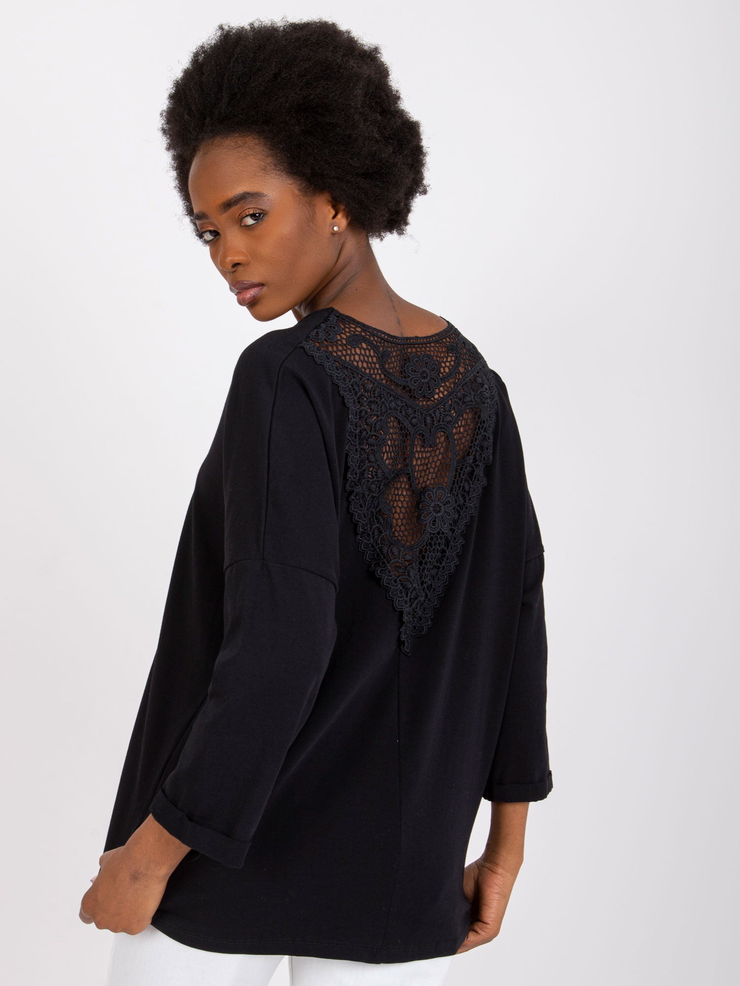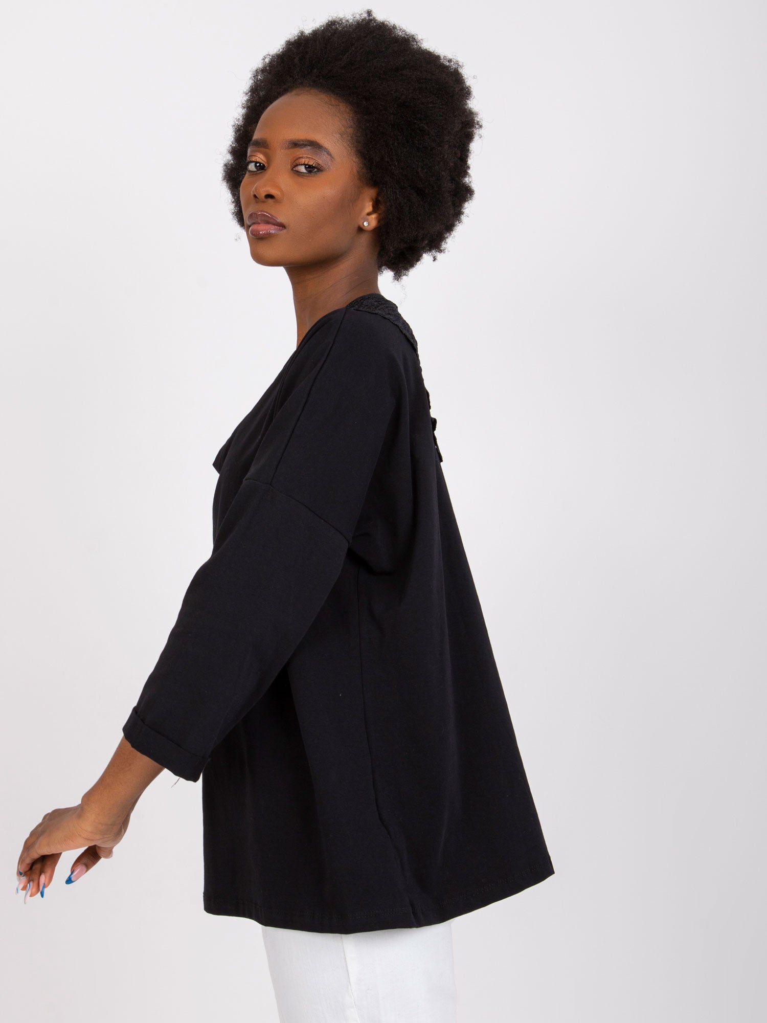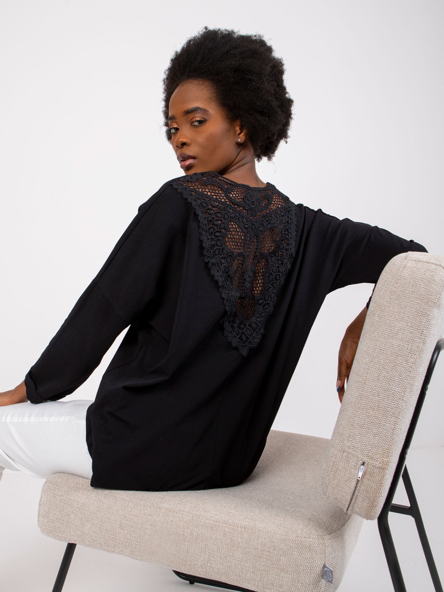 Wymiary bluzki w rozmiarze S/M mierzone na płasko: szerokość pod pachami - 60 cm, długość całkowita - 63 cm, długość rękawa - 46 cm.