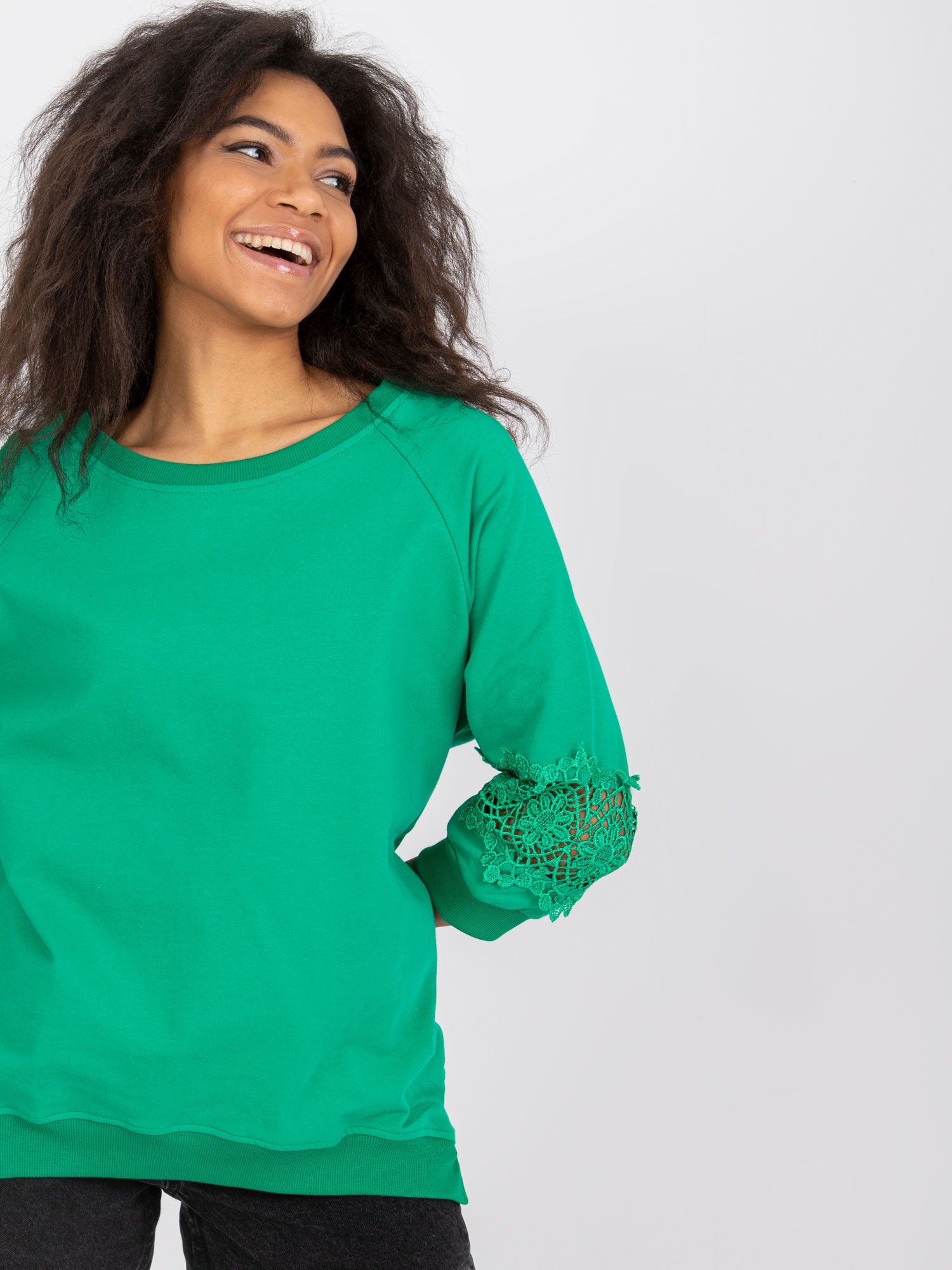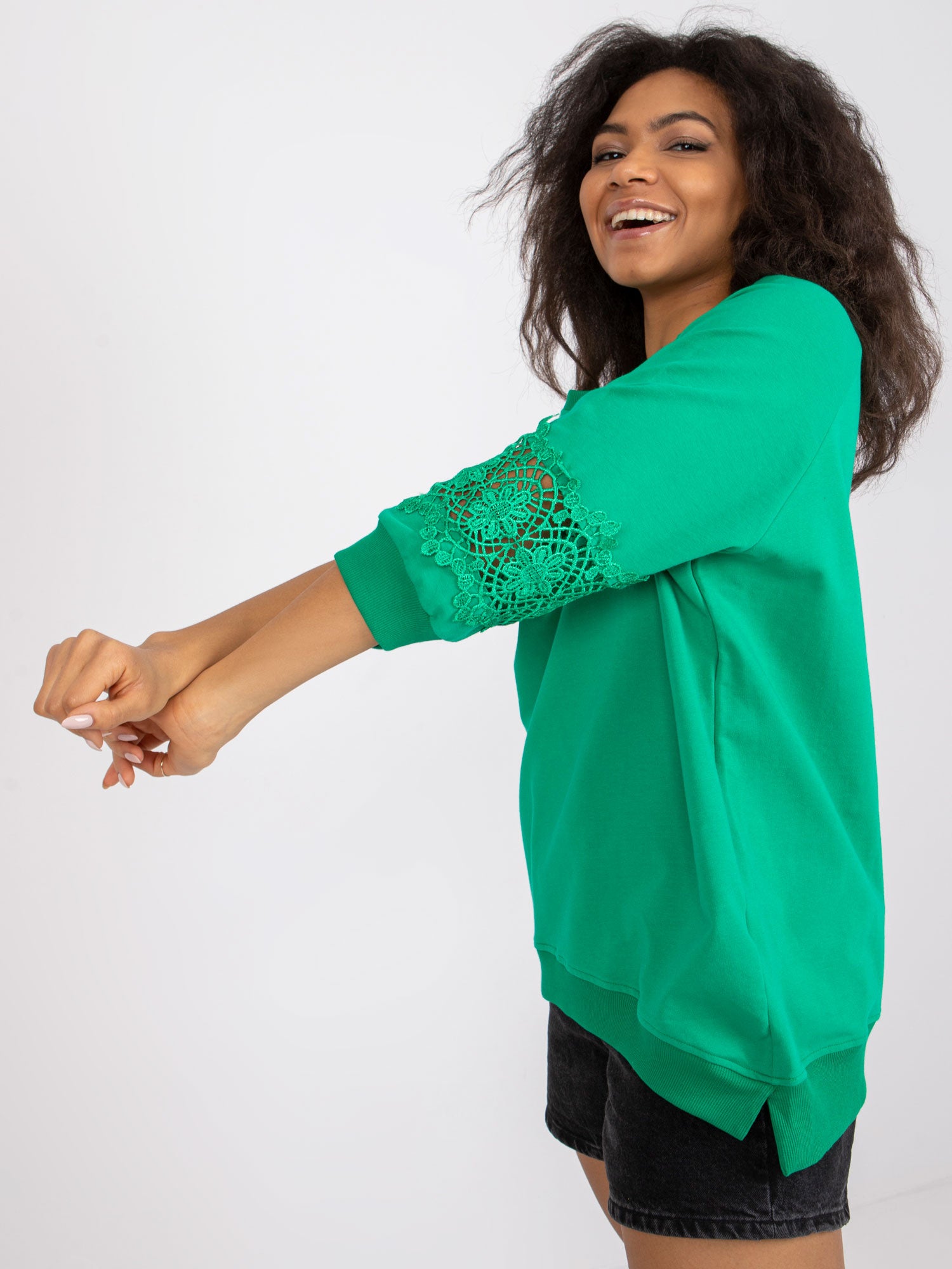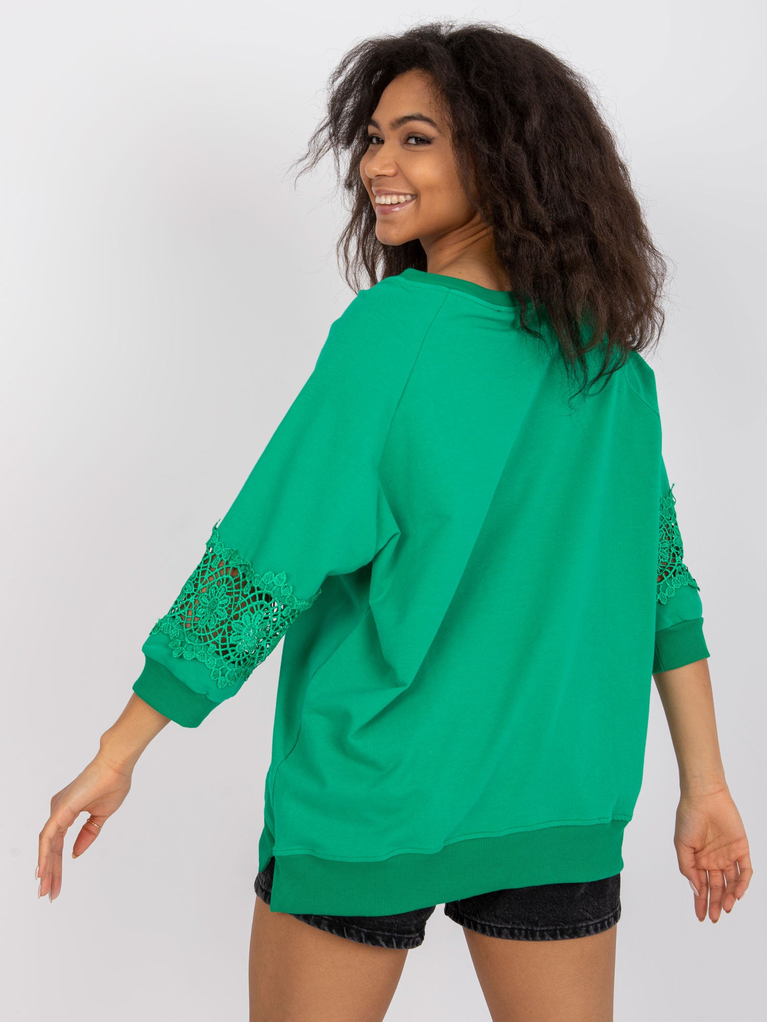 Wymiary bluzki w rozmiarze S/M mierzone na płasko: szerokość pod pachami - 63 cm, długość całkowita - 67 cm, długość rękawa - 44 cm.