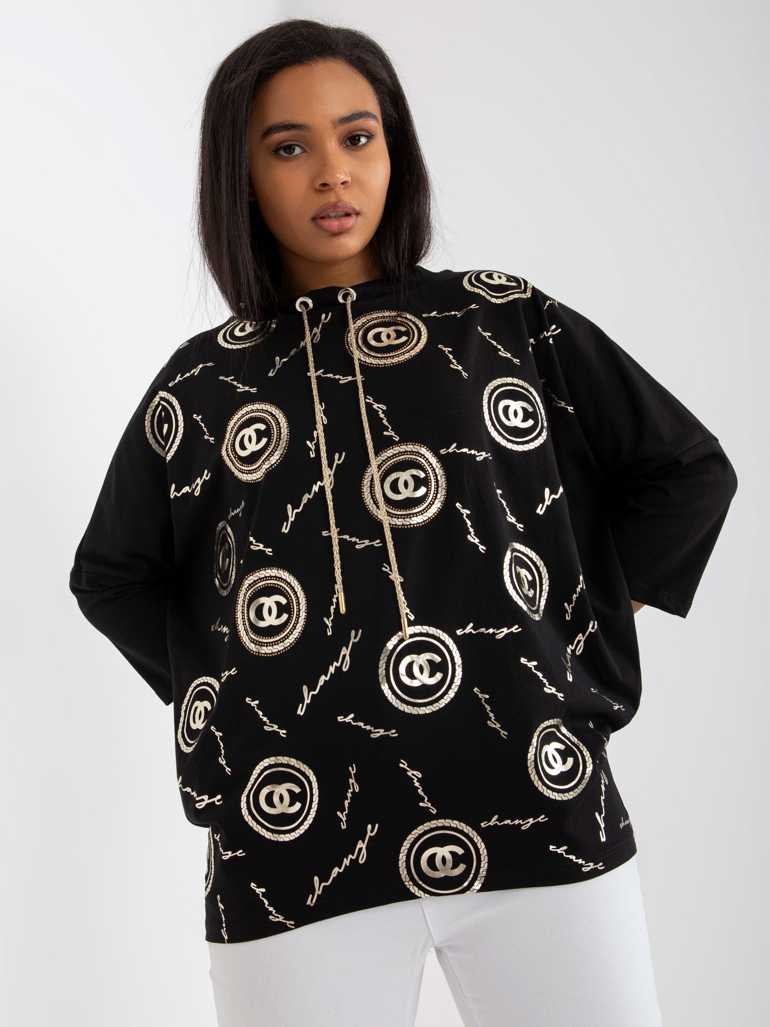 Wymiary bluzki w rozmiarze one size mierzone na płasko: szerokość pod pachami - 77 cm, długość rękawa - 40 cm, długość całkowita - 63 cm.