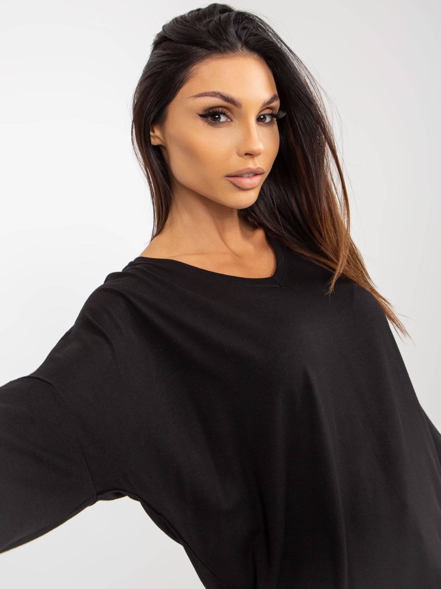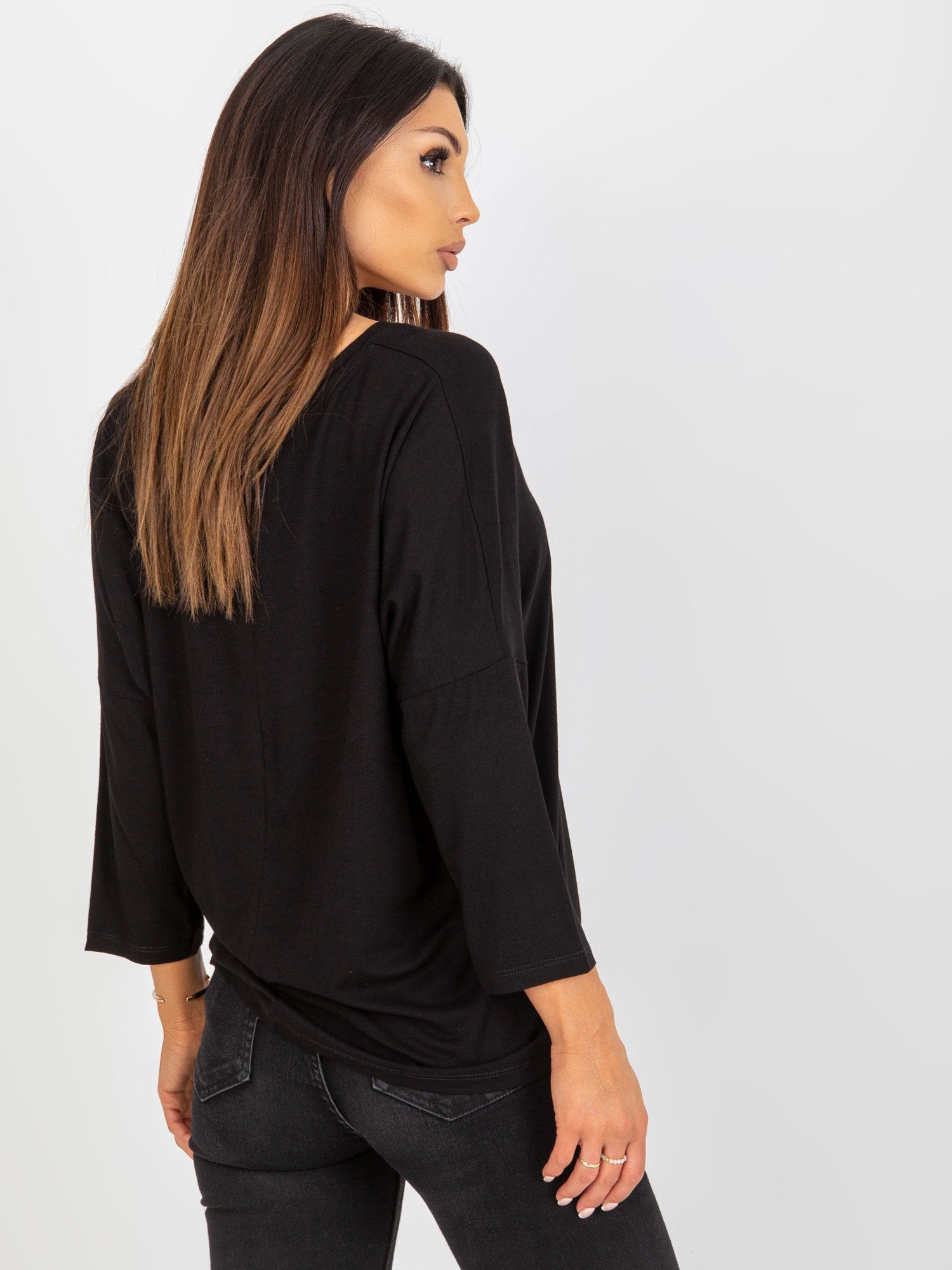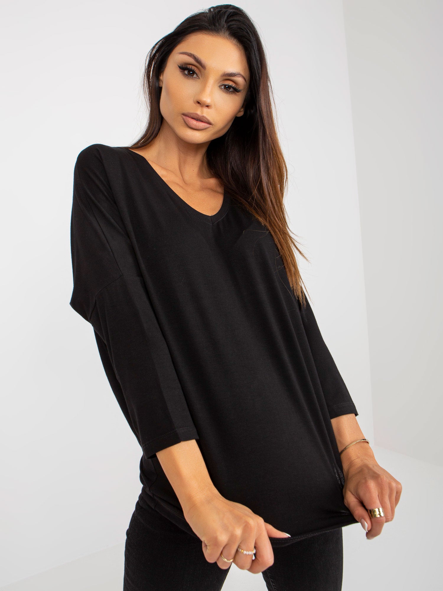 Czarna wiskozowa bluzka basic z rękawem 3/4 .