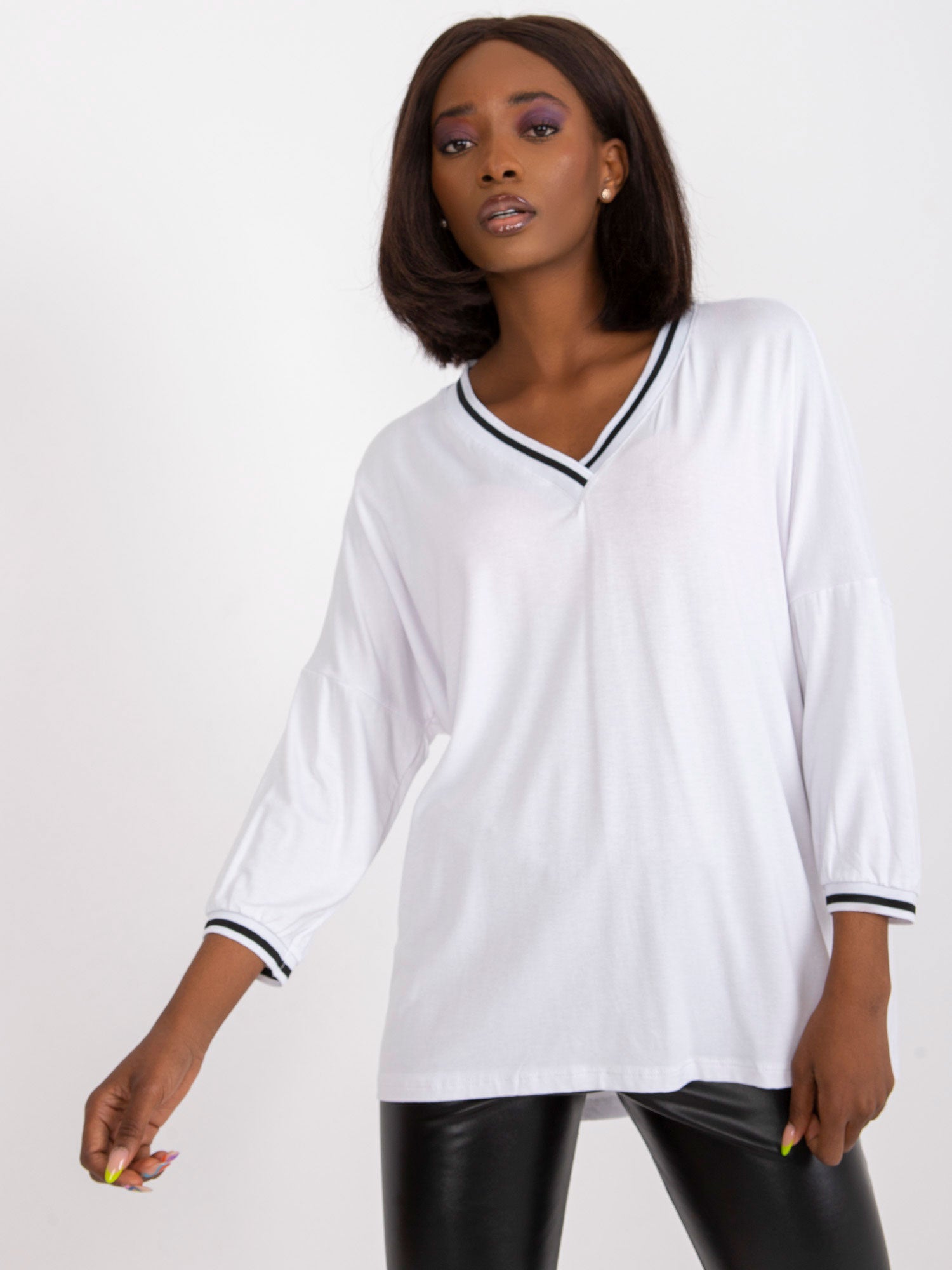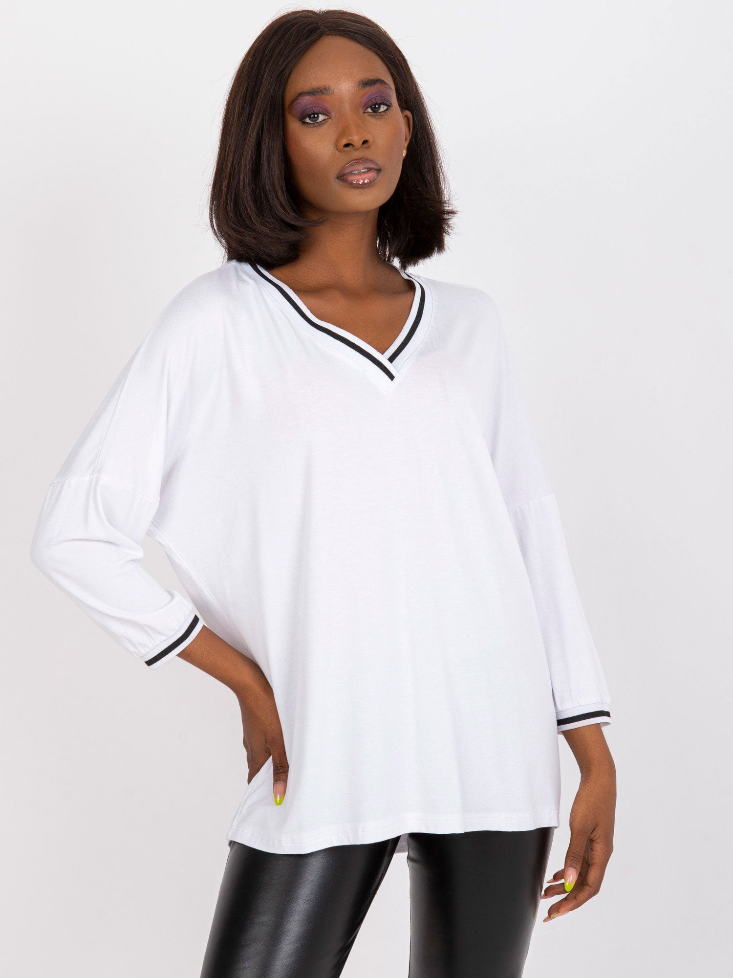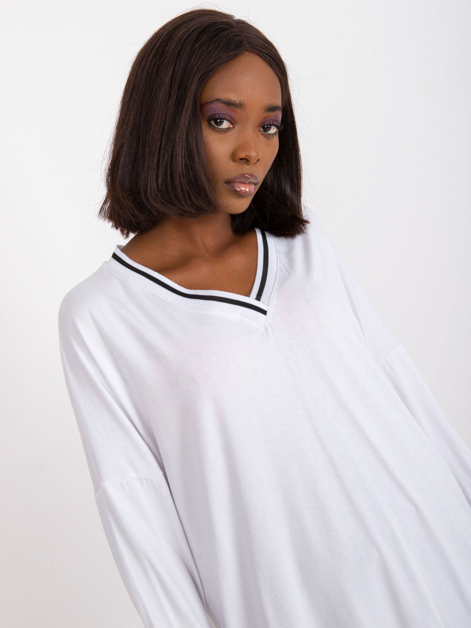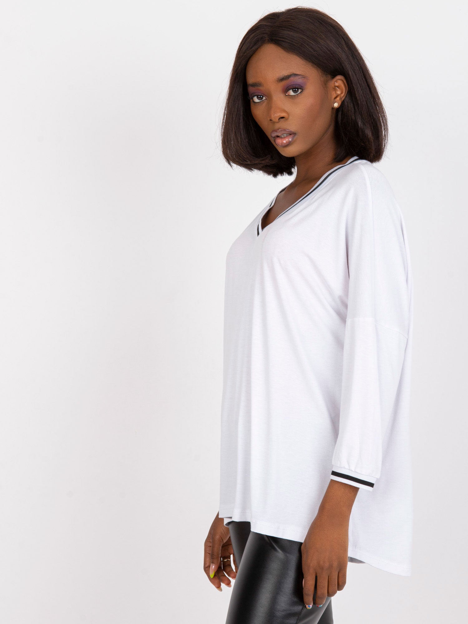 Wymiary bluzki w rozmiarze S/M mierzone na płasko: szerokość pod pachami - 60 cm, długość całkowita - 69 cm, długość rękawa - 43 cm.