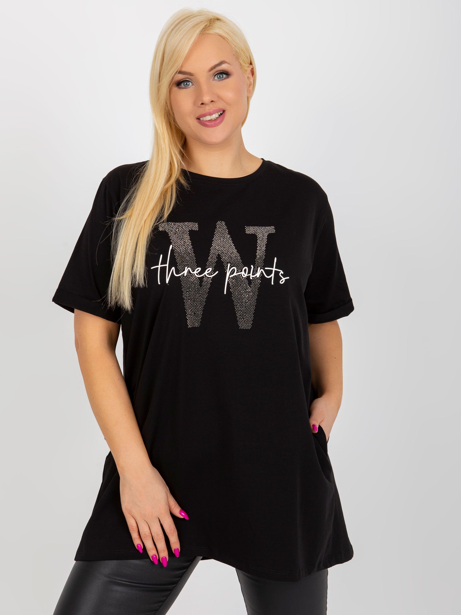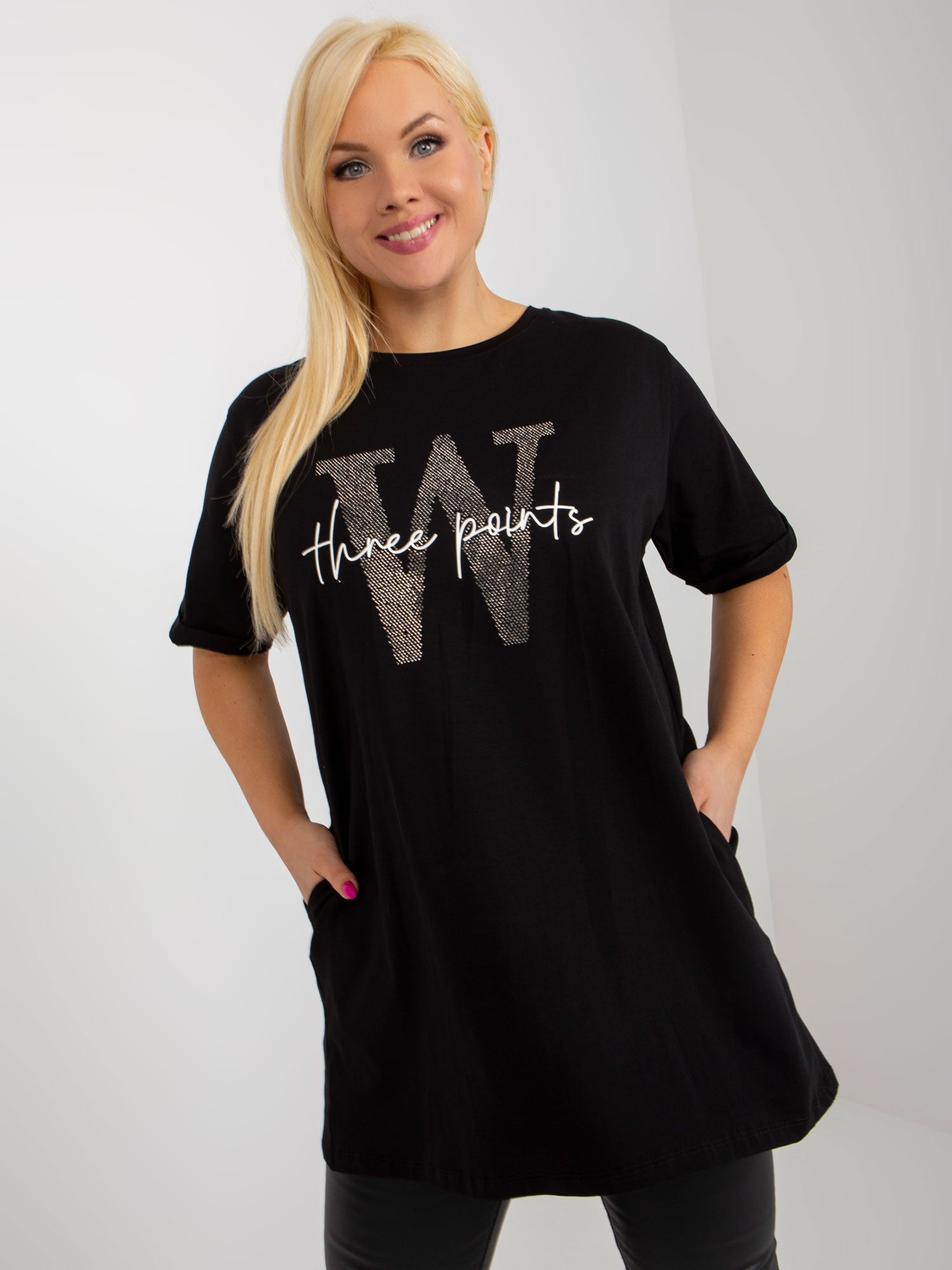 Czarna długa bluzka plus size z kieszeniami .