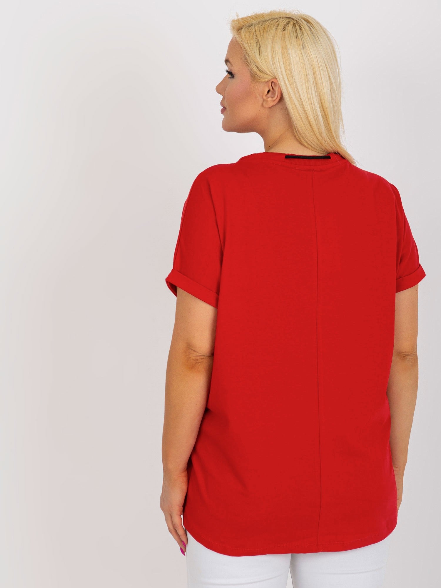 Wymiary bluzki w rozmiarze one size mierzone na płasko: szerokość pod pachami - 70 cm, długość całkowita (przód) - 69 cm, długość całkowita (tył) - 75 cm .