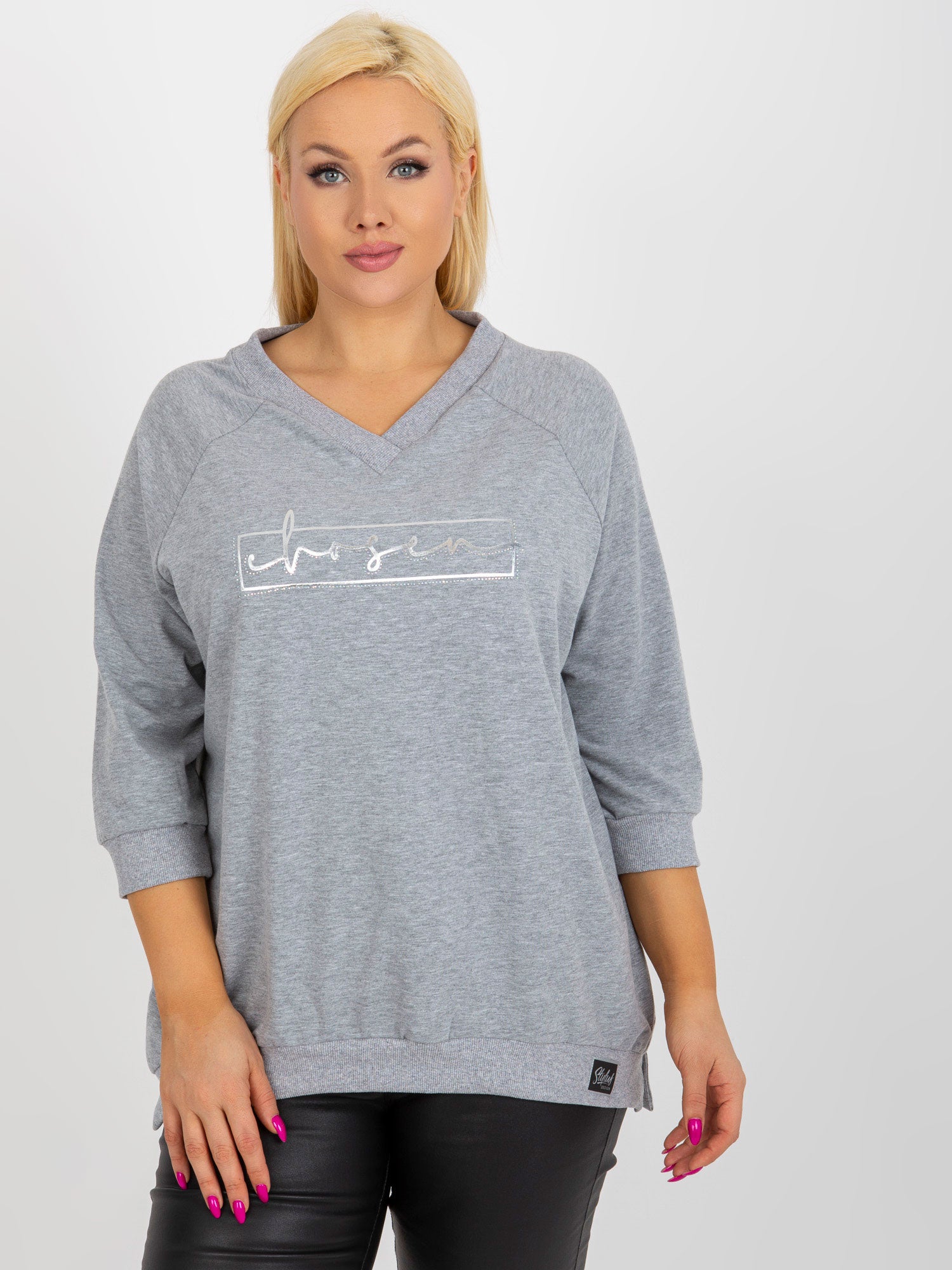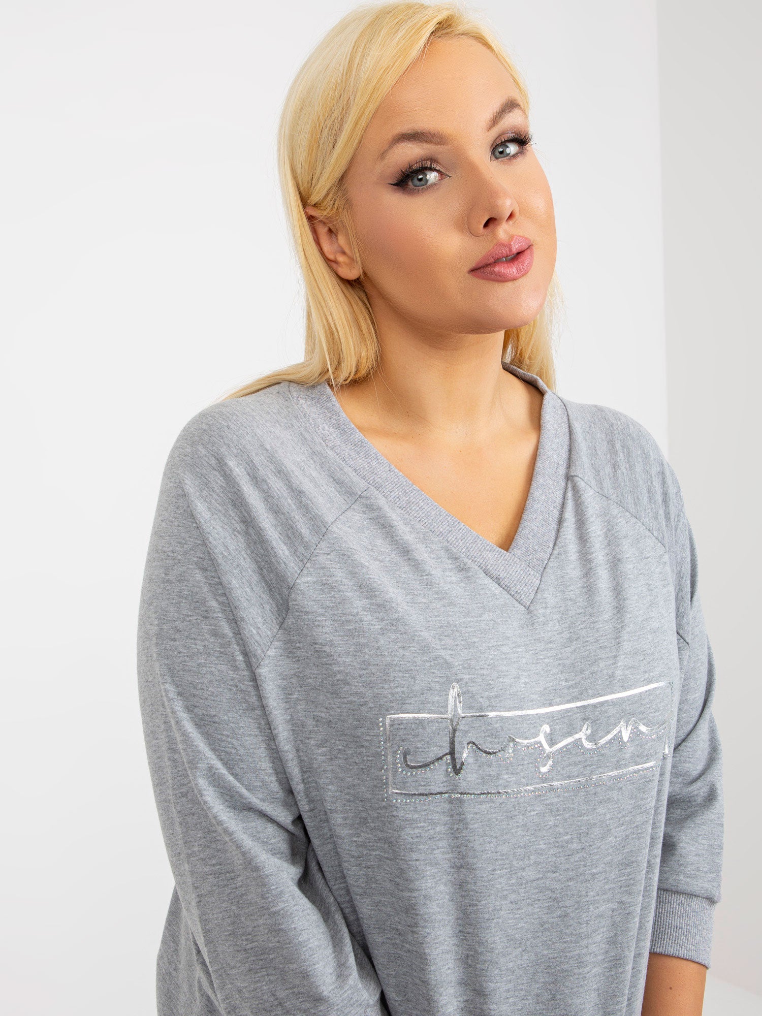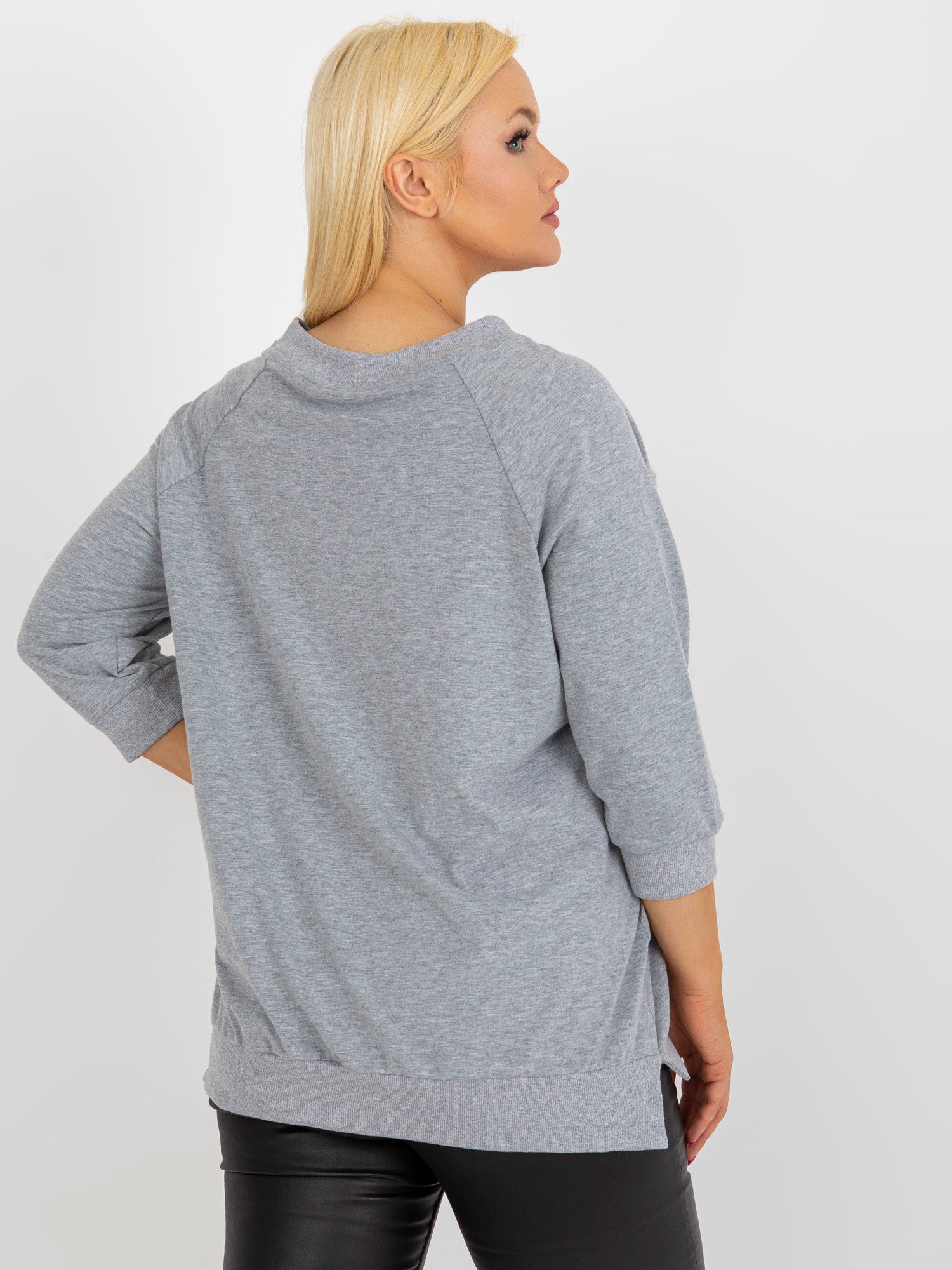 Wymiary bluzki w rozmiarze one size mierzone na płasko: szerokość pod pachami - 62 cm, długość rękawa - 44 cm, długość całkowita (przód) - 68 cm, długość całkowita (tył) - 73 cm .