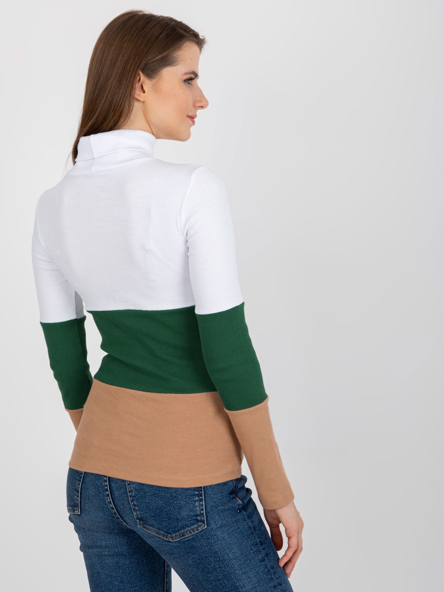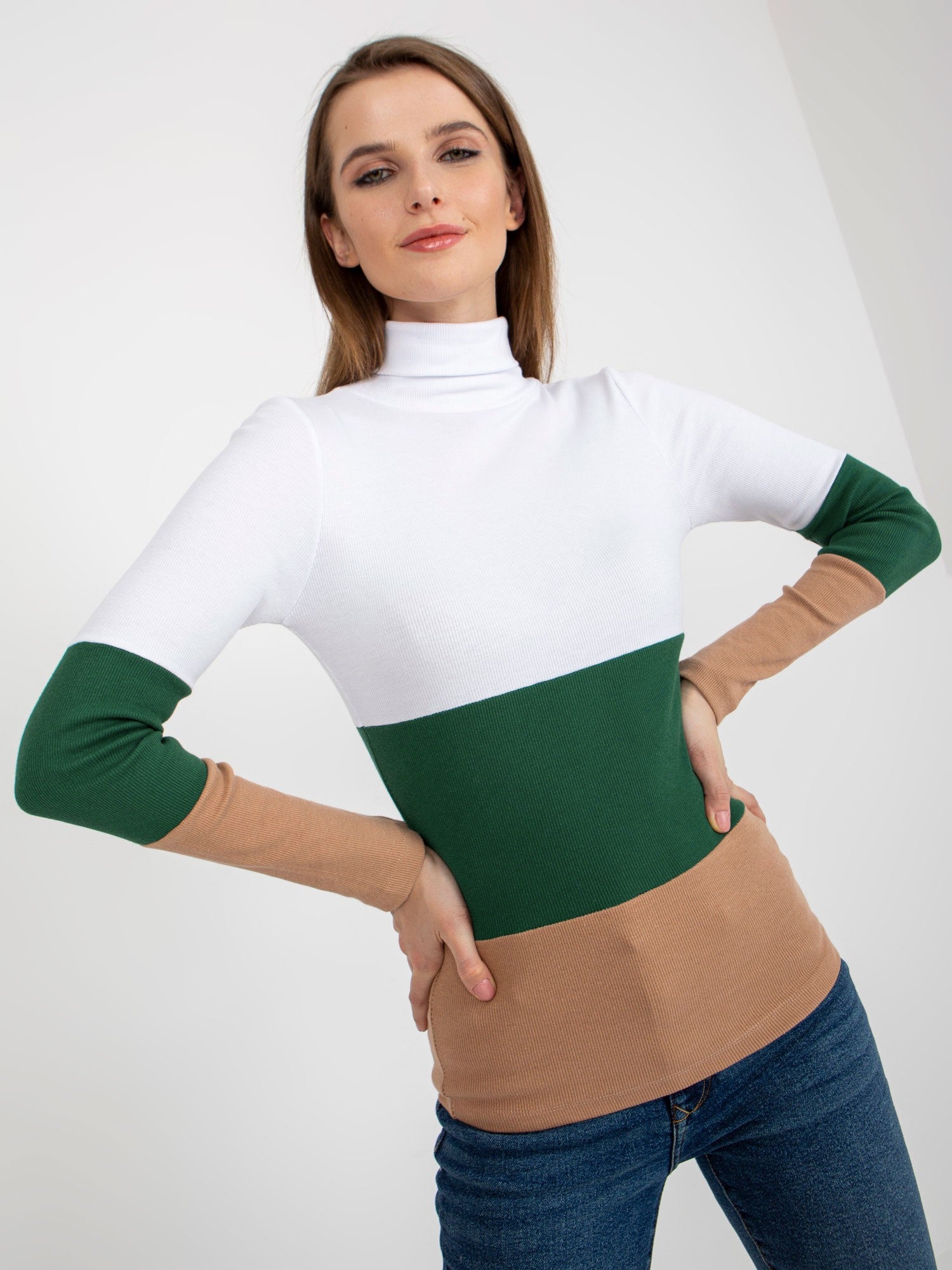 Biało-ciemnozielona bluzka basic z golfem w prążek .