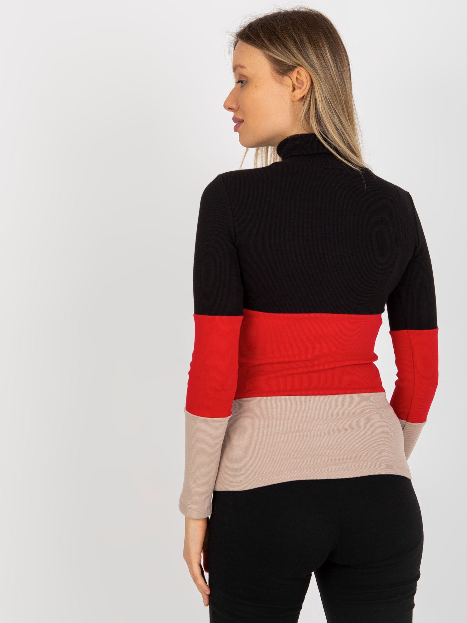 Czarno-czerwona bawełniana bluzka basic z golfem w prążek .