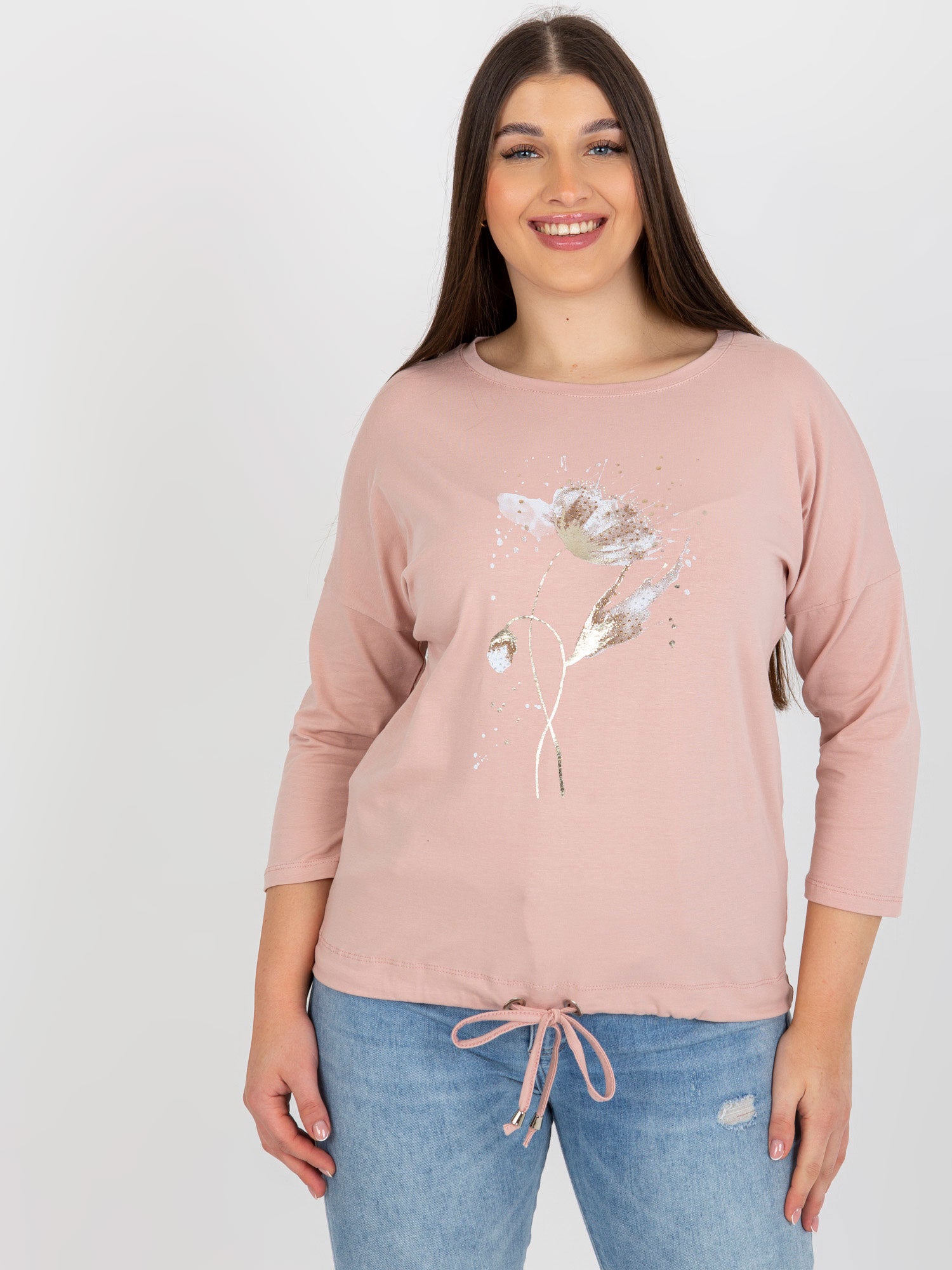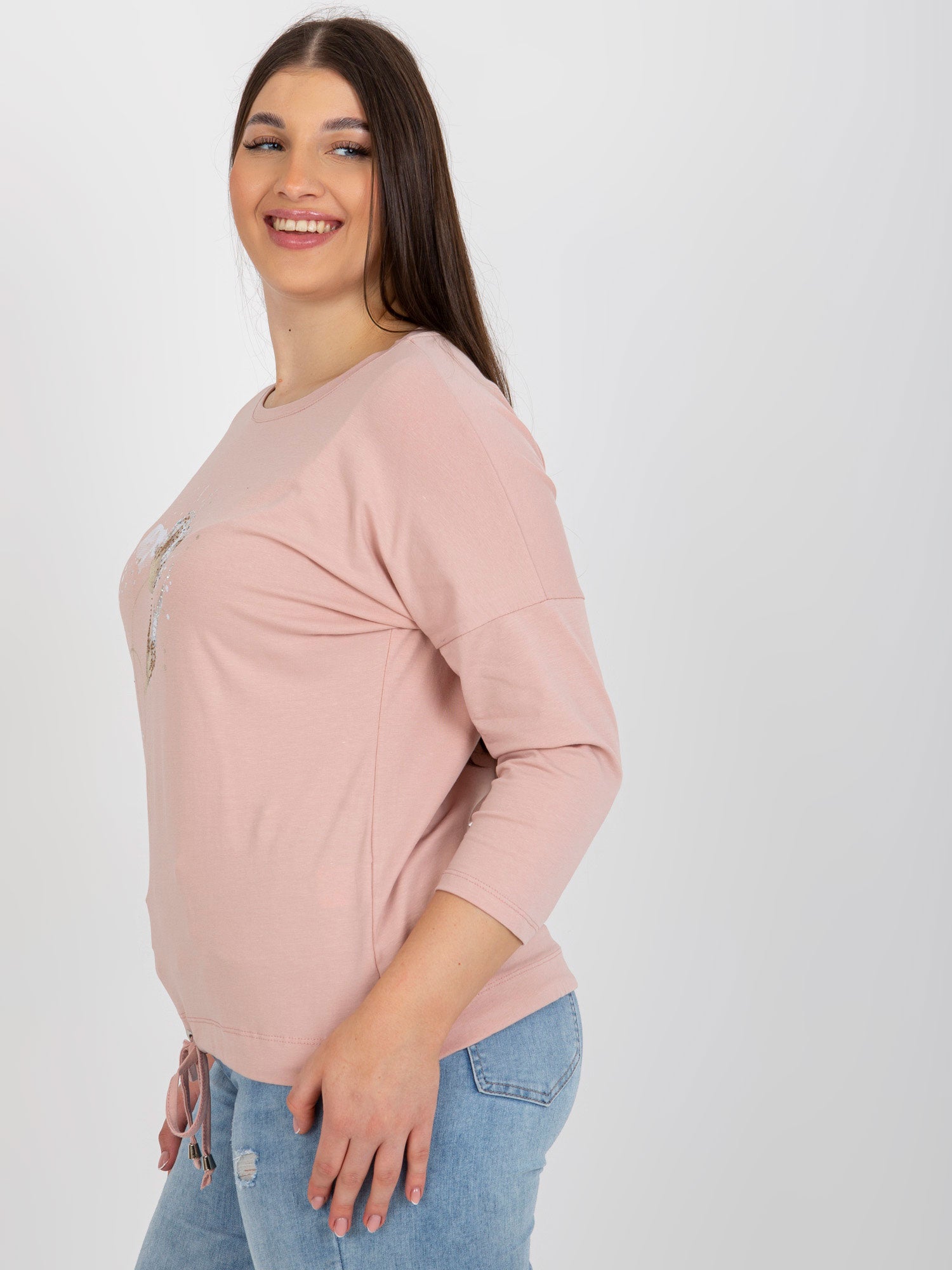 Jasnoróżowa damska bluzka plus size ze ściągaczem .