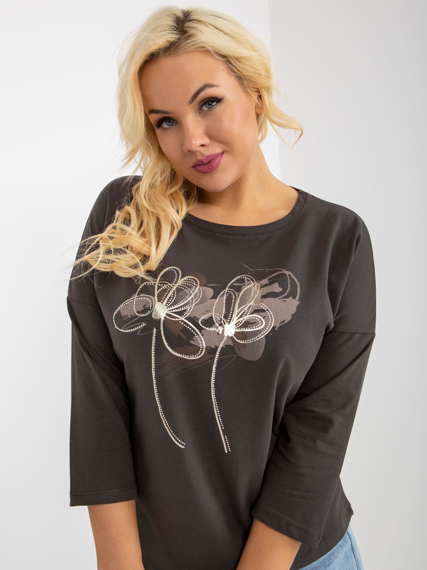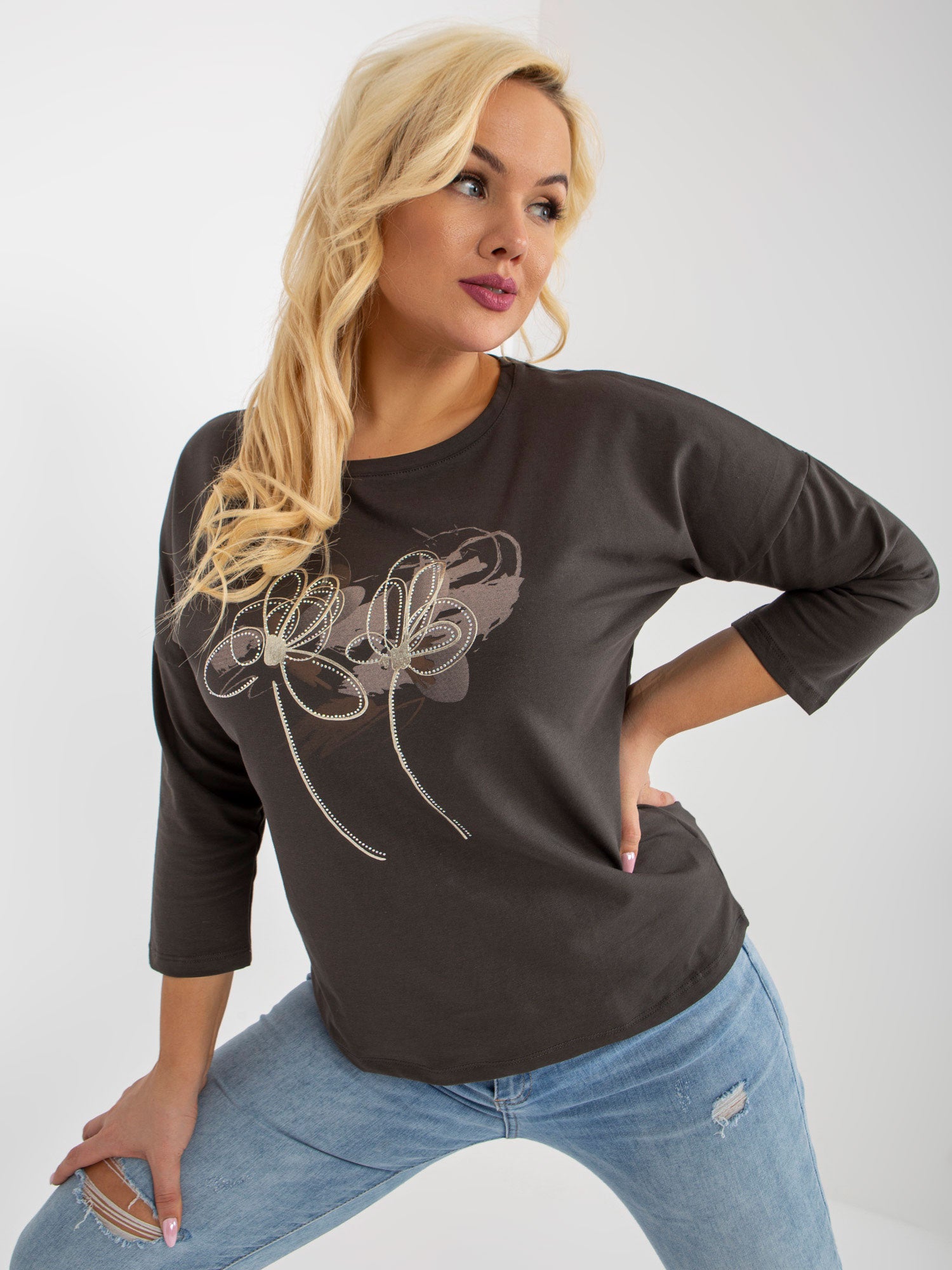 Khaki bawełniana plus size z rękawem 3/4 .