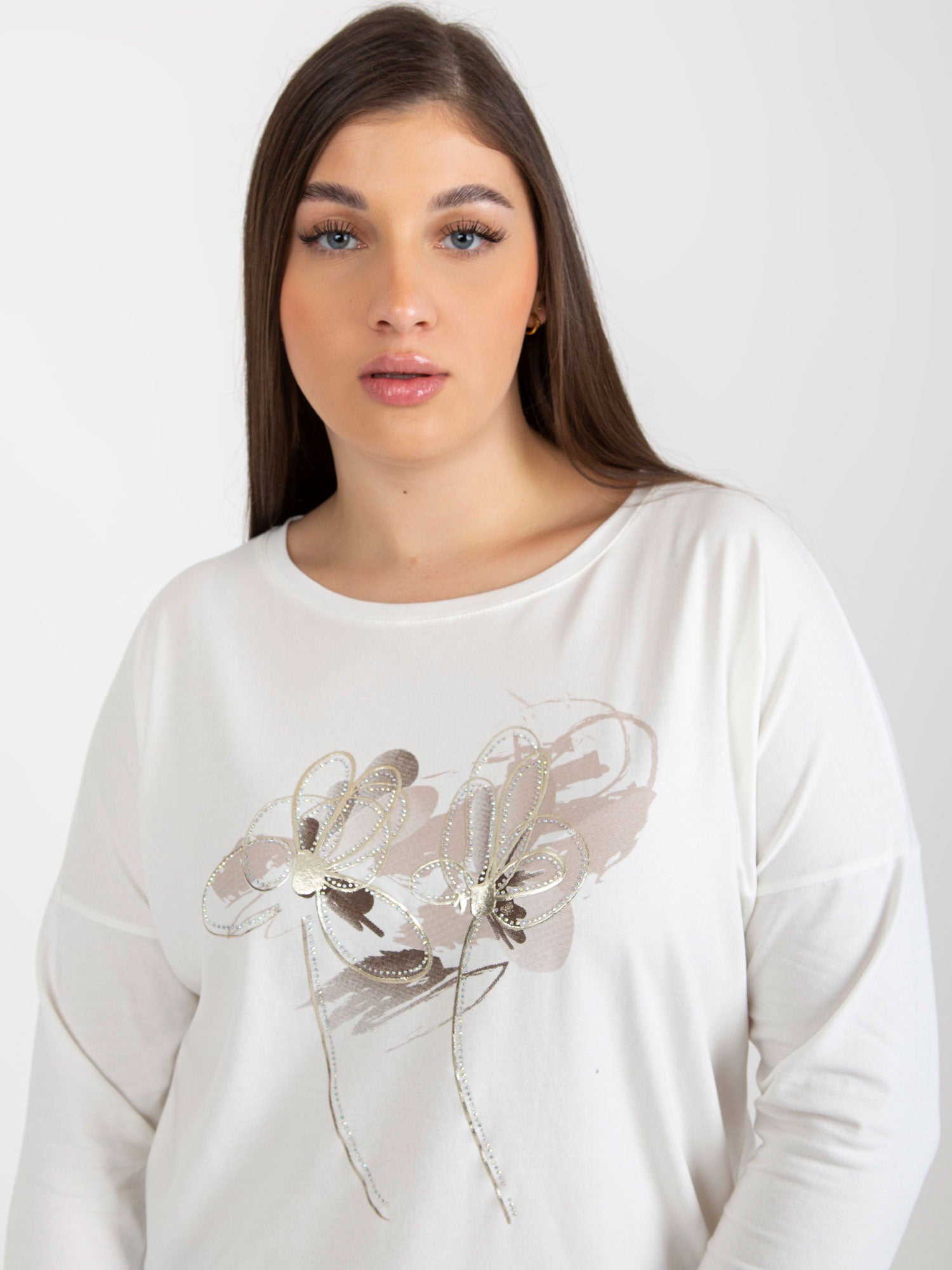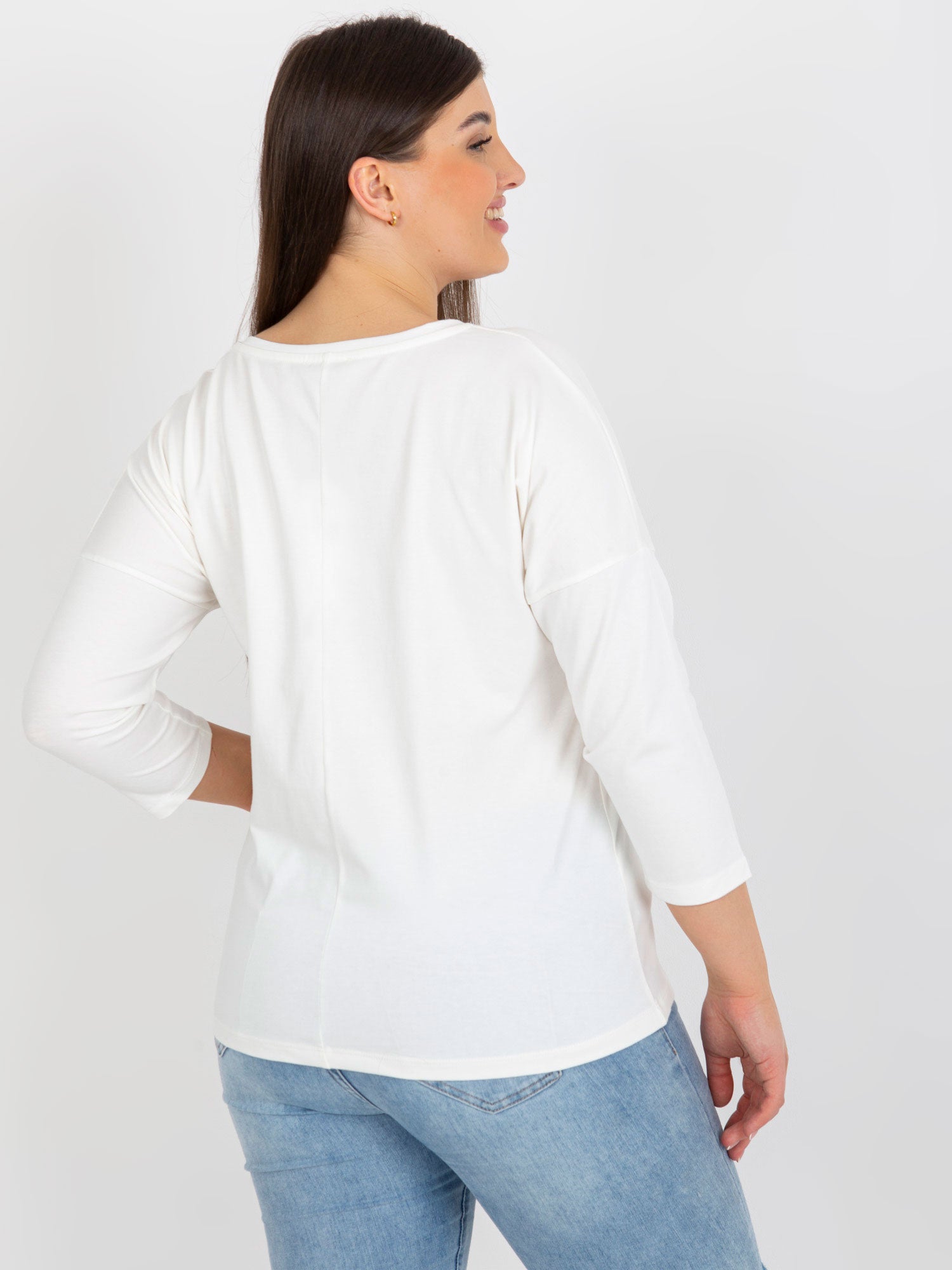 Ecru bluzka plus size z printem i rękawem 3/4 .