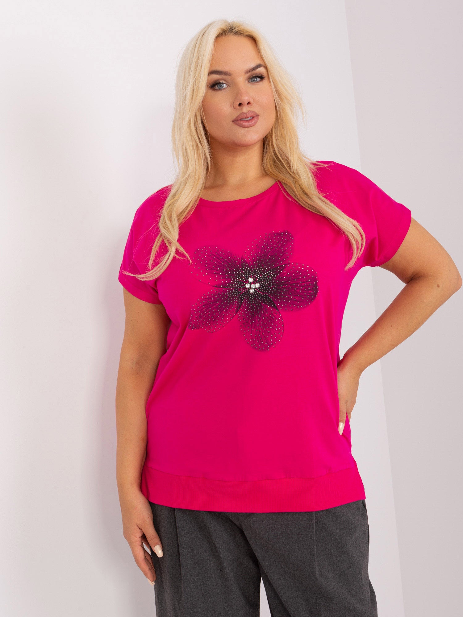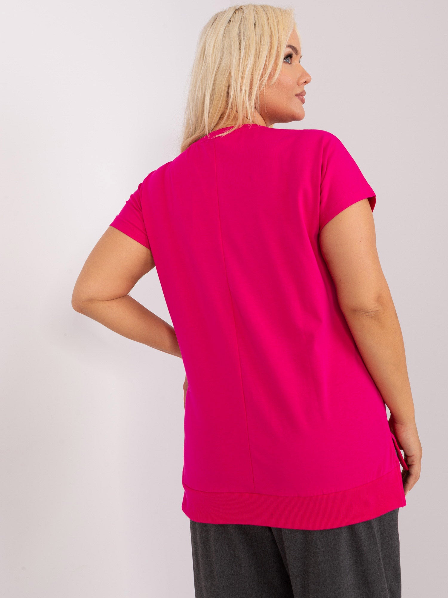 Fuksjowa bluzka plus size z krótkim rękawem.