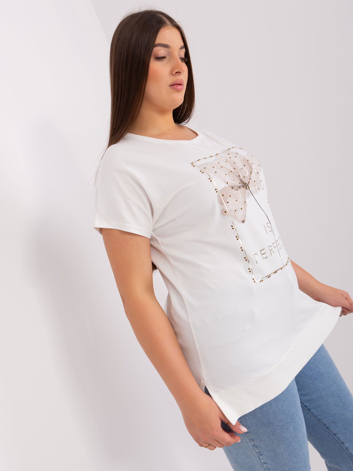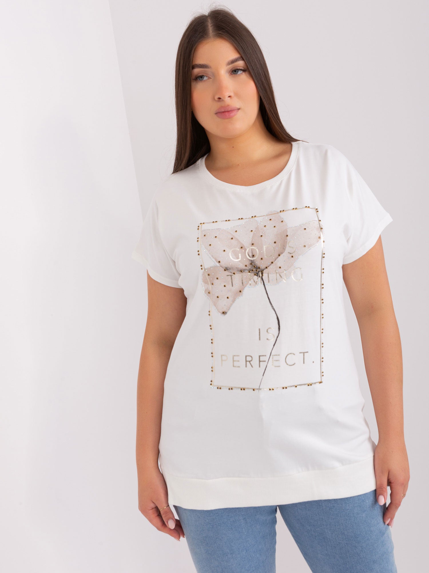 Wymiary bluzki w rozmiarze one size mierzone na płasko: szerokość bluzki pod pachami - 59 cm, długość całkowita - 70 cm.