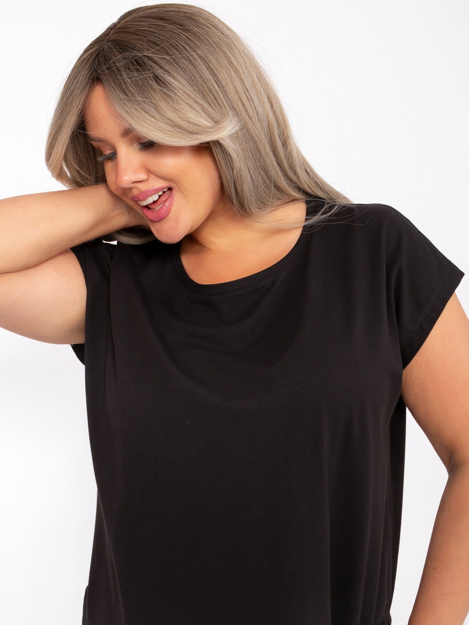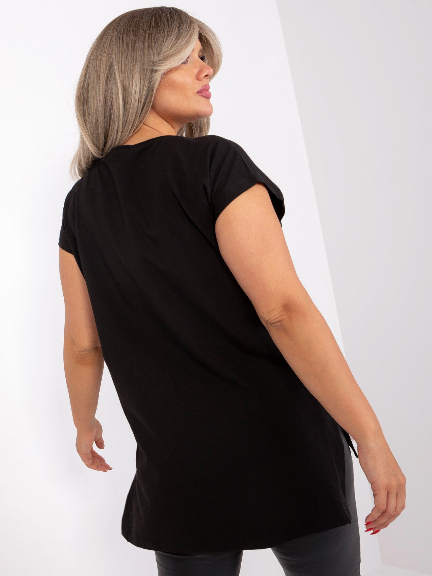 Czarna damska bluzka plus size z rozcięciami .