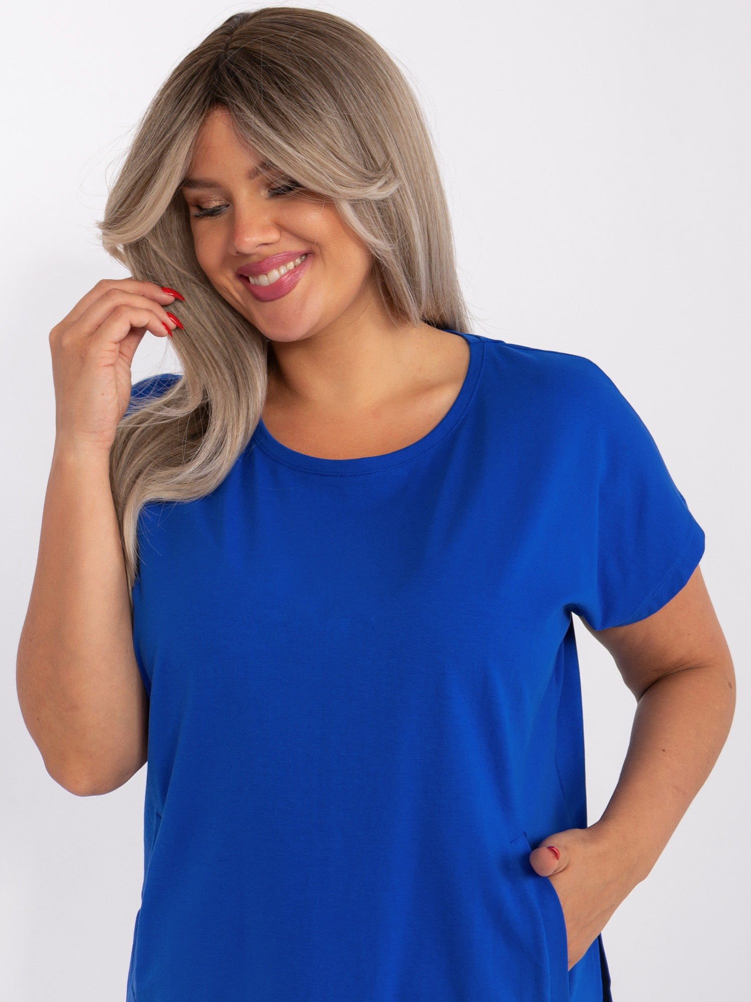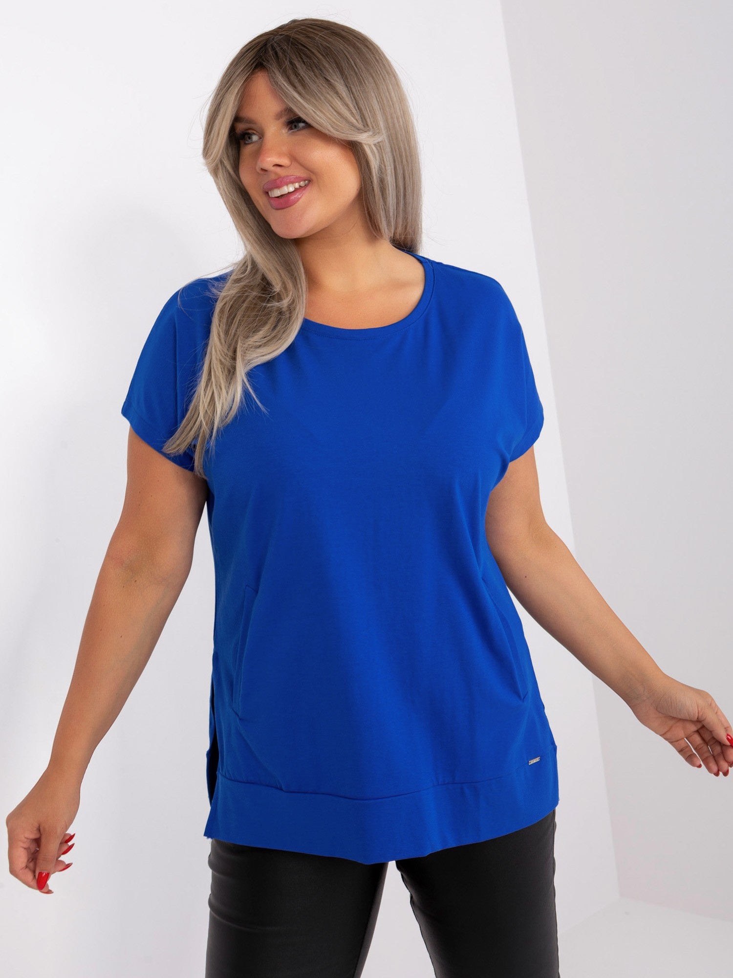 Kobaltowa bluzka plus size z krótkim rękawem .
