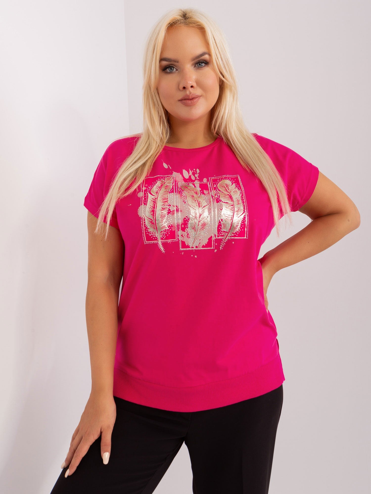 Fuksjowa bluzka plus size z aplikacją z dżetów .