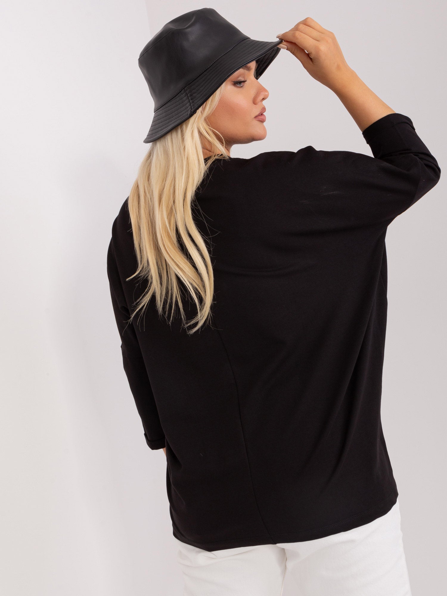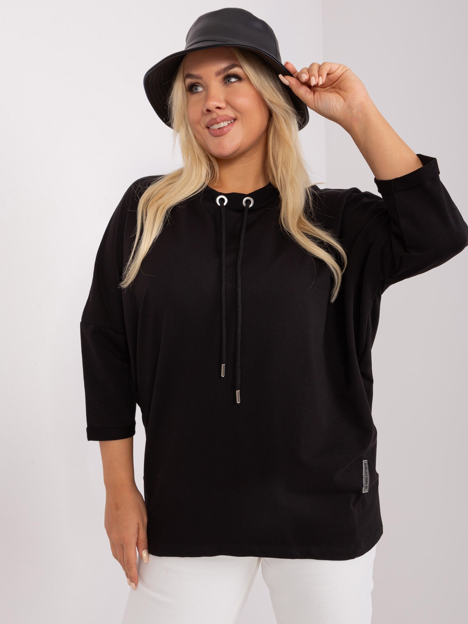Czarna luźna bluzka damska plus size.