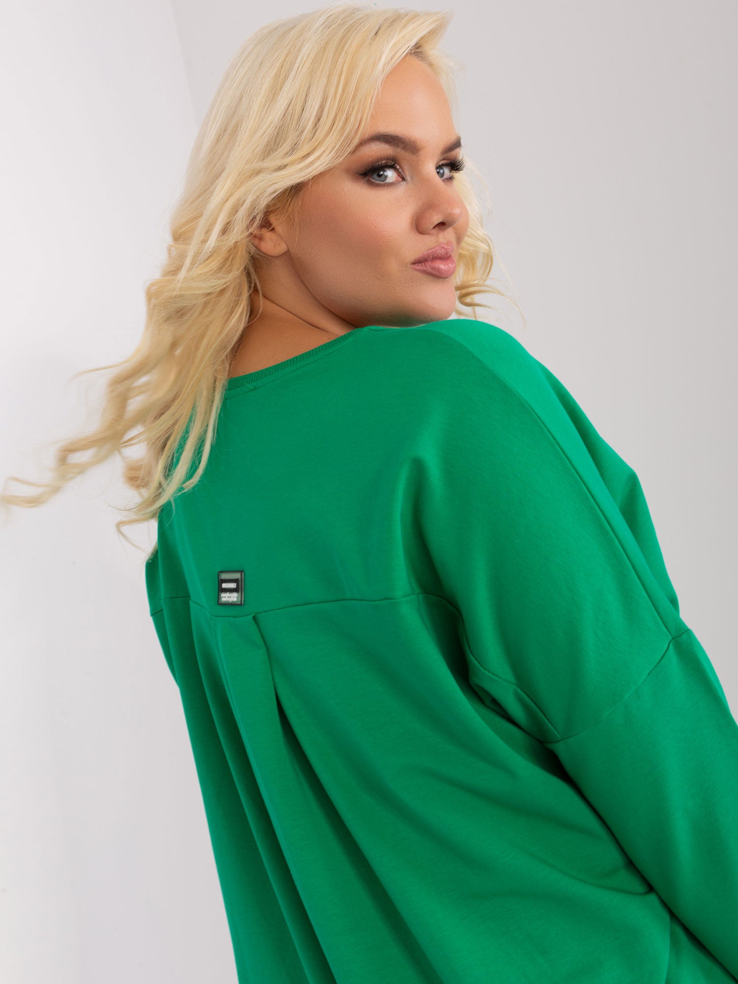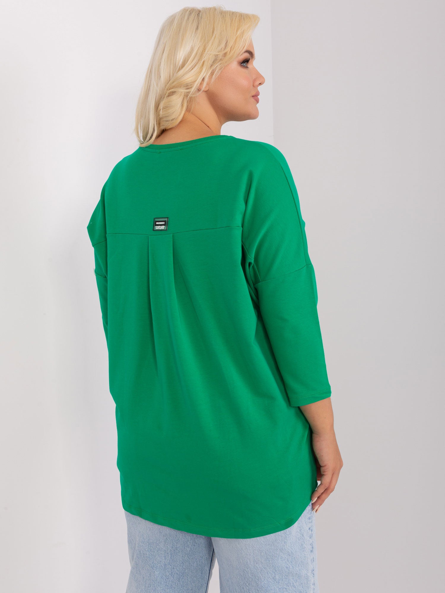 Zielona damska bluzka plus size z dłuższym tyłem.