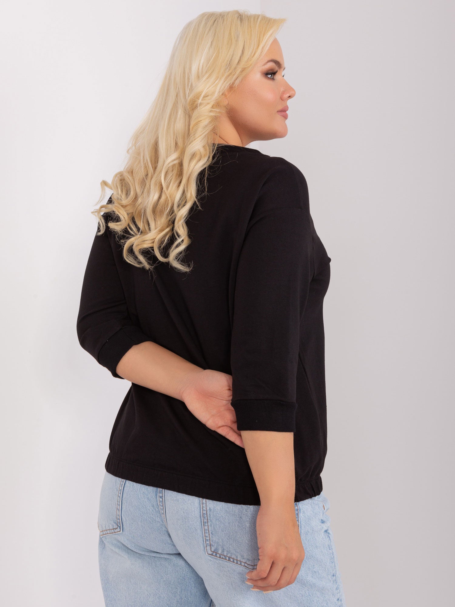 Wymiary bluzki w rozmiarze one size mierzone na płasko: szerokość pod pachami - 57 cm, długość całkowita - 63 cm, długość rękawa - 43 cm