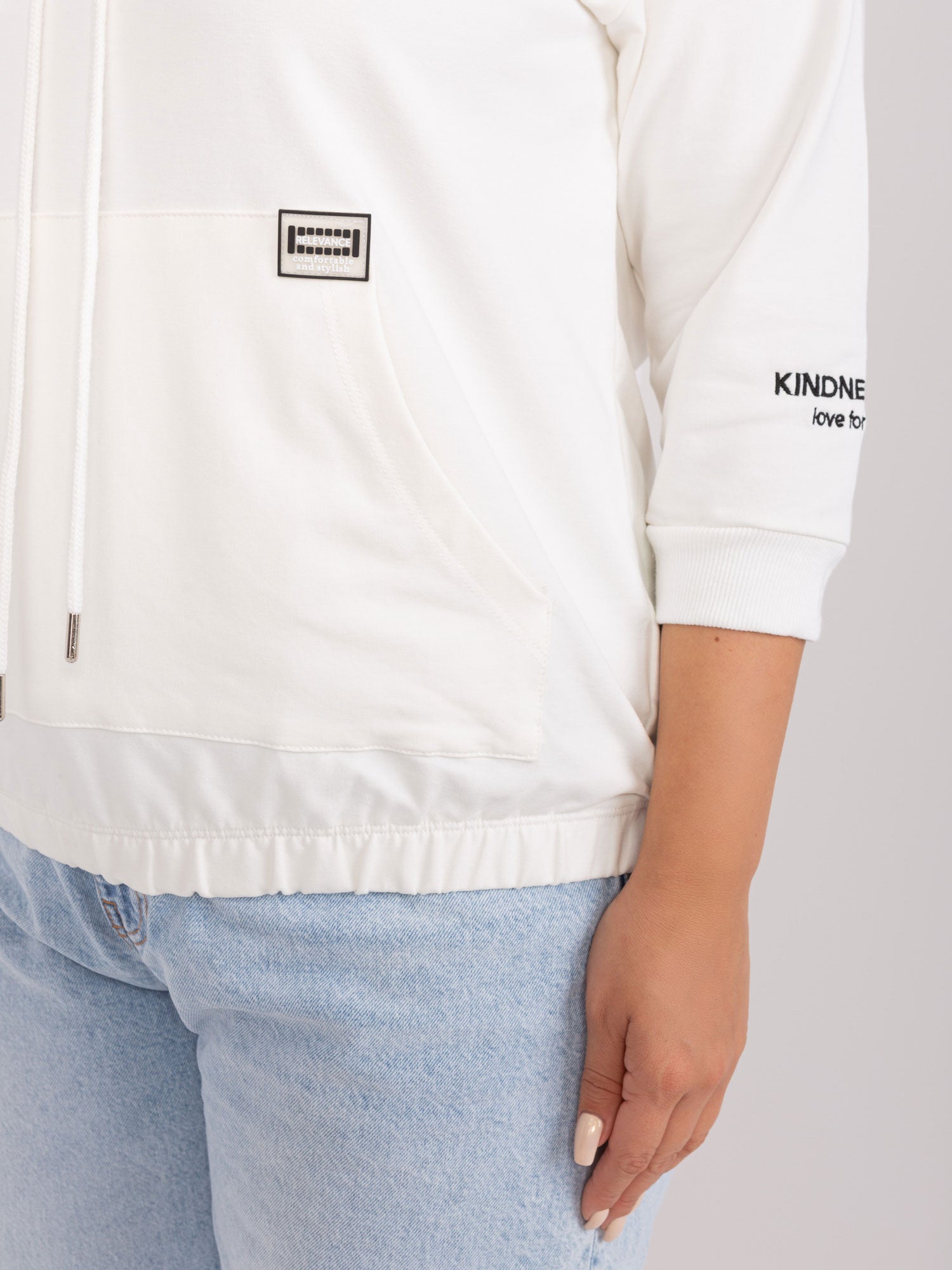 Wymiary bluzki w rozmiarze one size mierzone na płasko: szerokość pod pachami - 57 cm, długość całkowita - 63 cm, długość rękawa - 43 cm