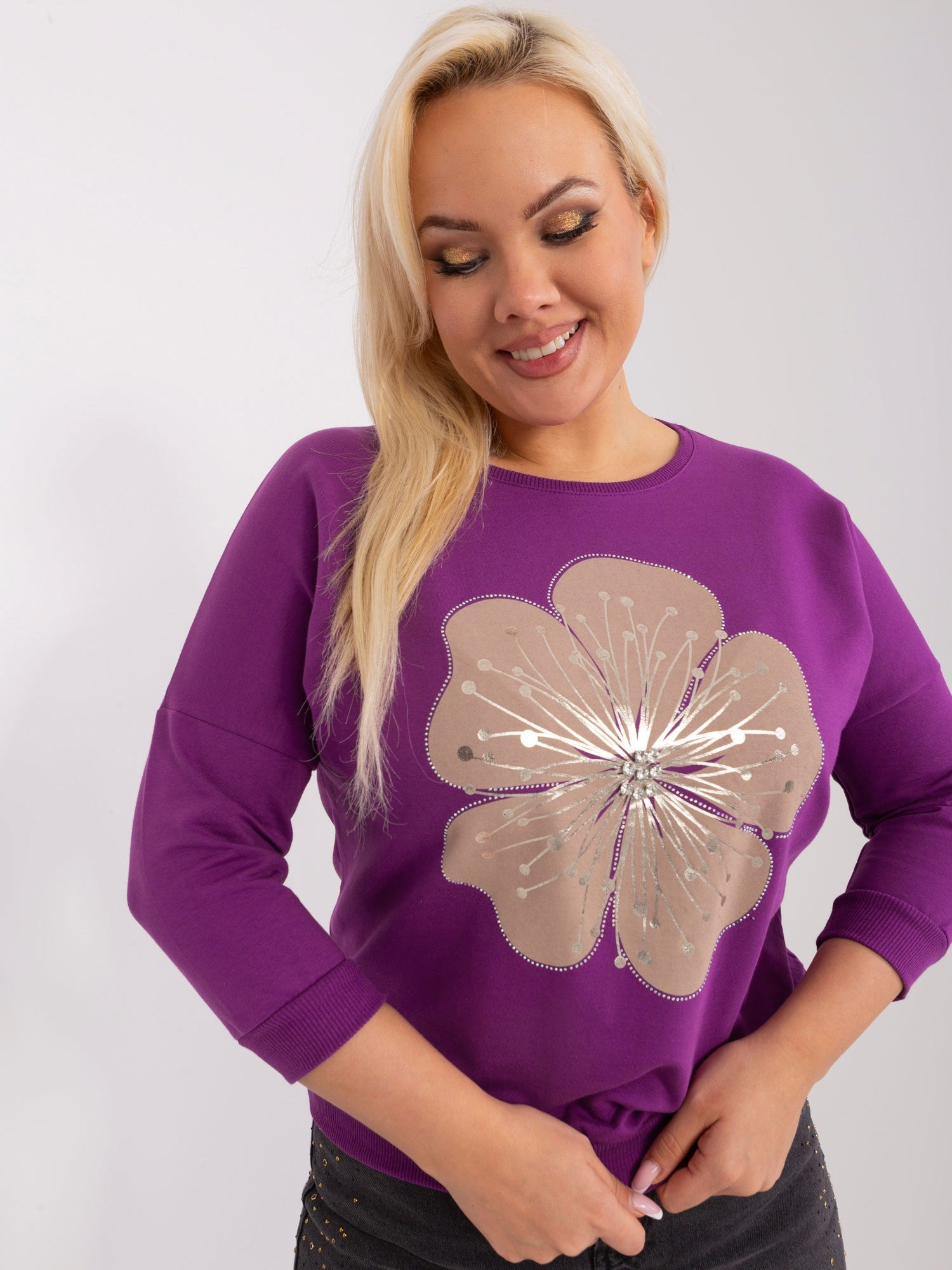 Fioletowa codzienna bluzka plus size z bawełny .