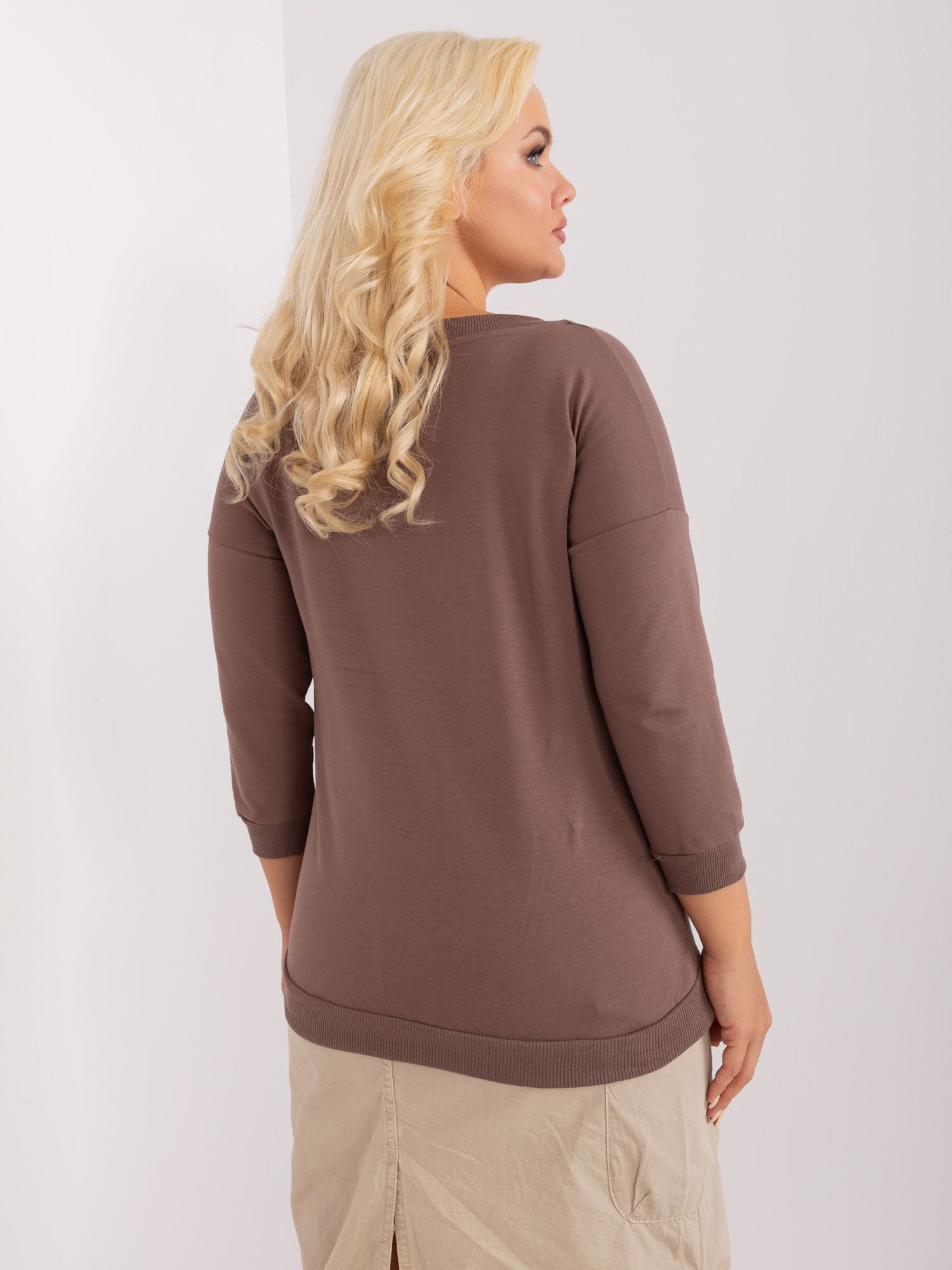 Wymiary bluzki w rozmiarze one size mierzone na płasko: szerokość pod pachami - 57 cm, długość całkowita - 61 cm, długość rękawa - 39 cm