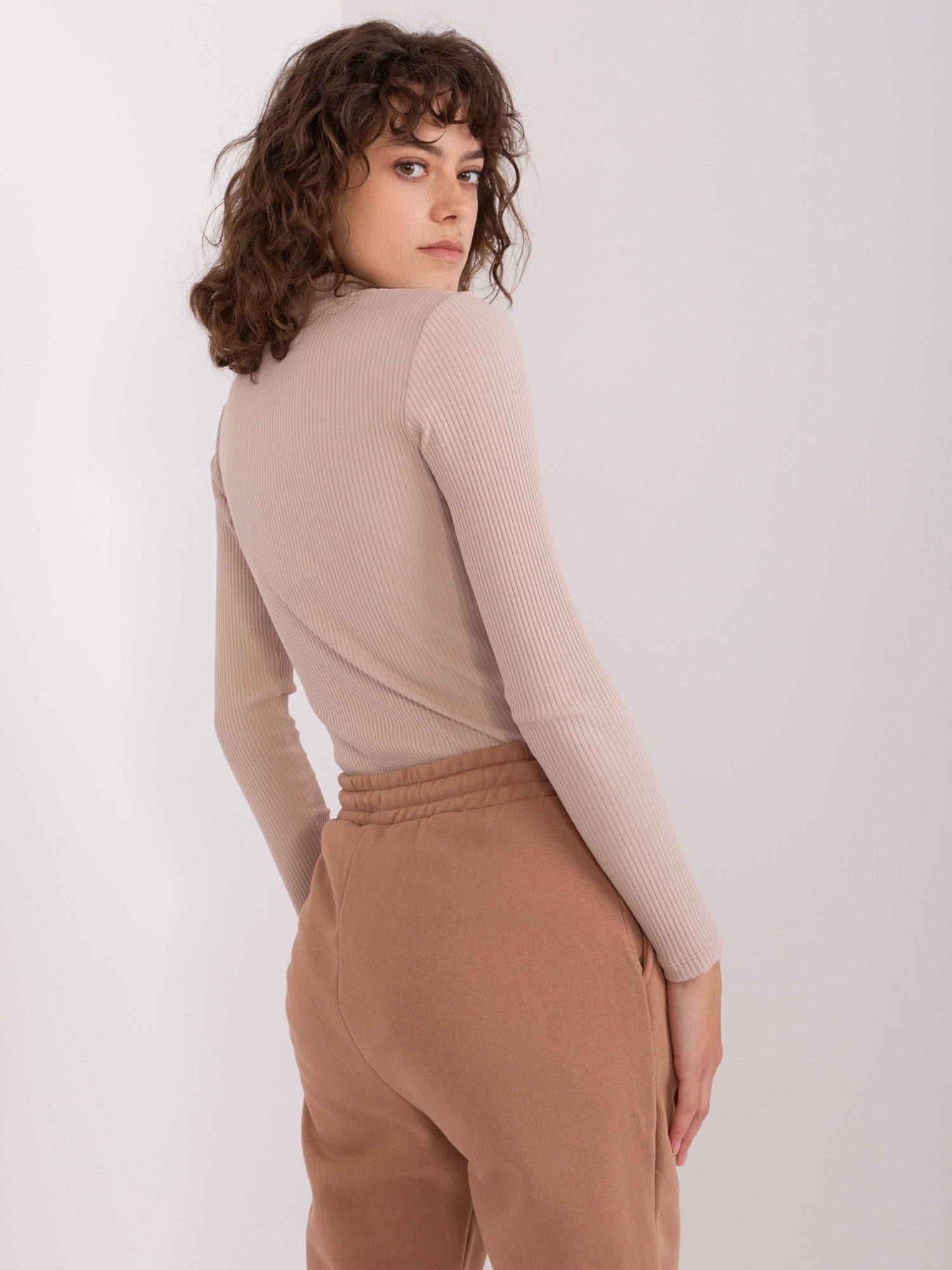 Beżowa damska bluzka w prążek BASIC FEEL GOOD.
