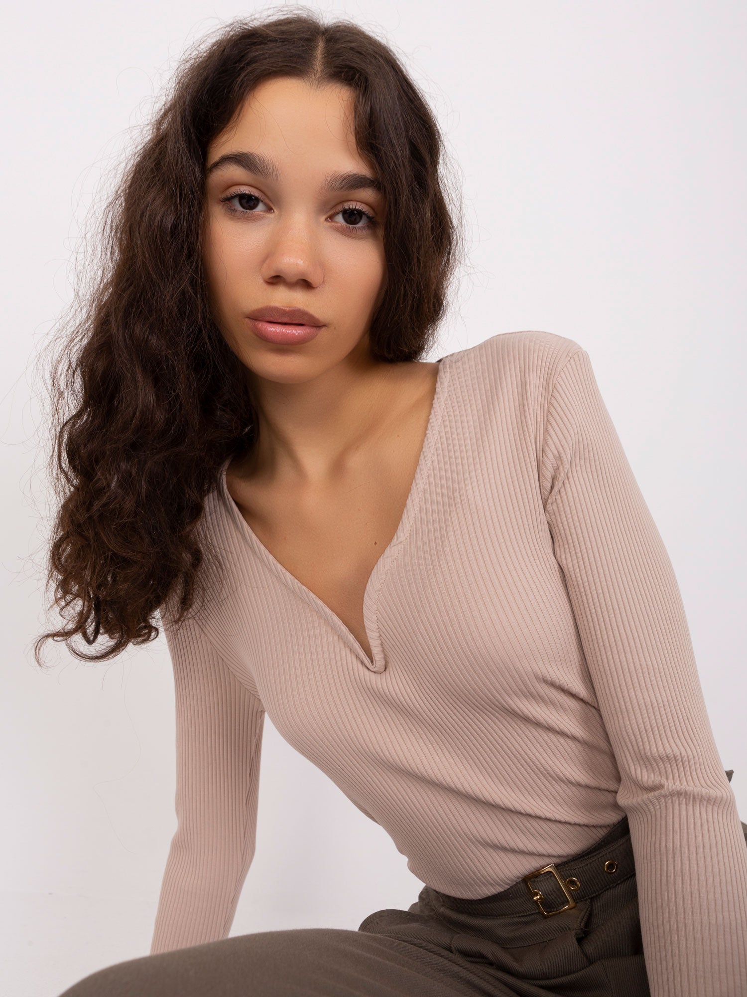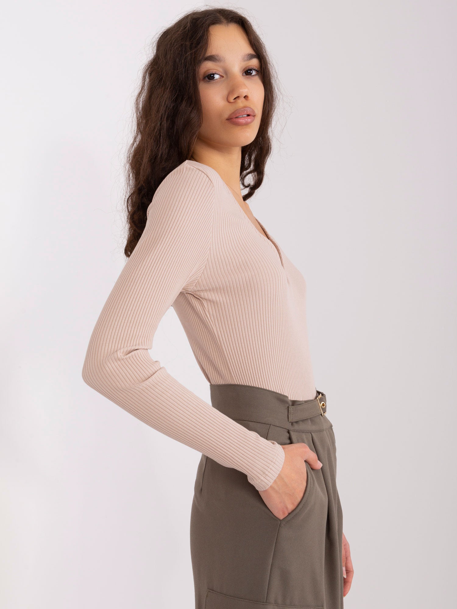 Beżowa bluzka z usztywnianym dekoltem BASIC FEEL GOOD .