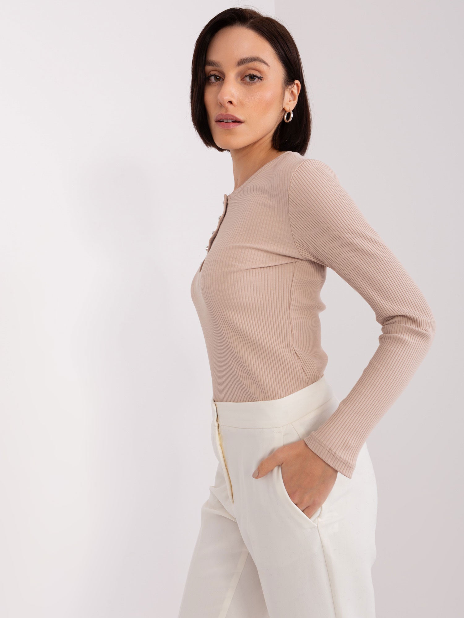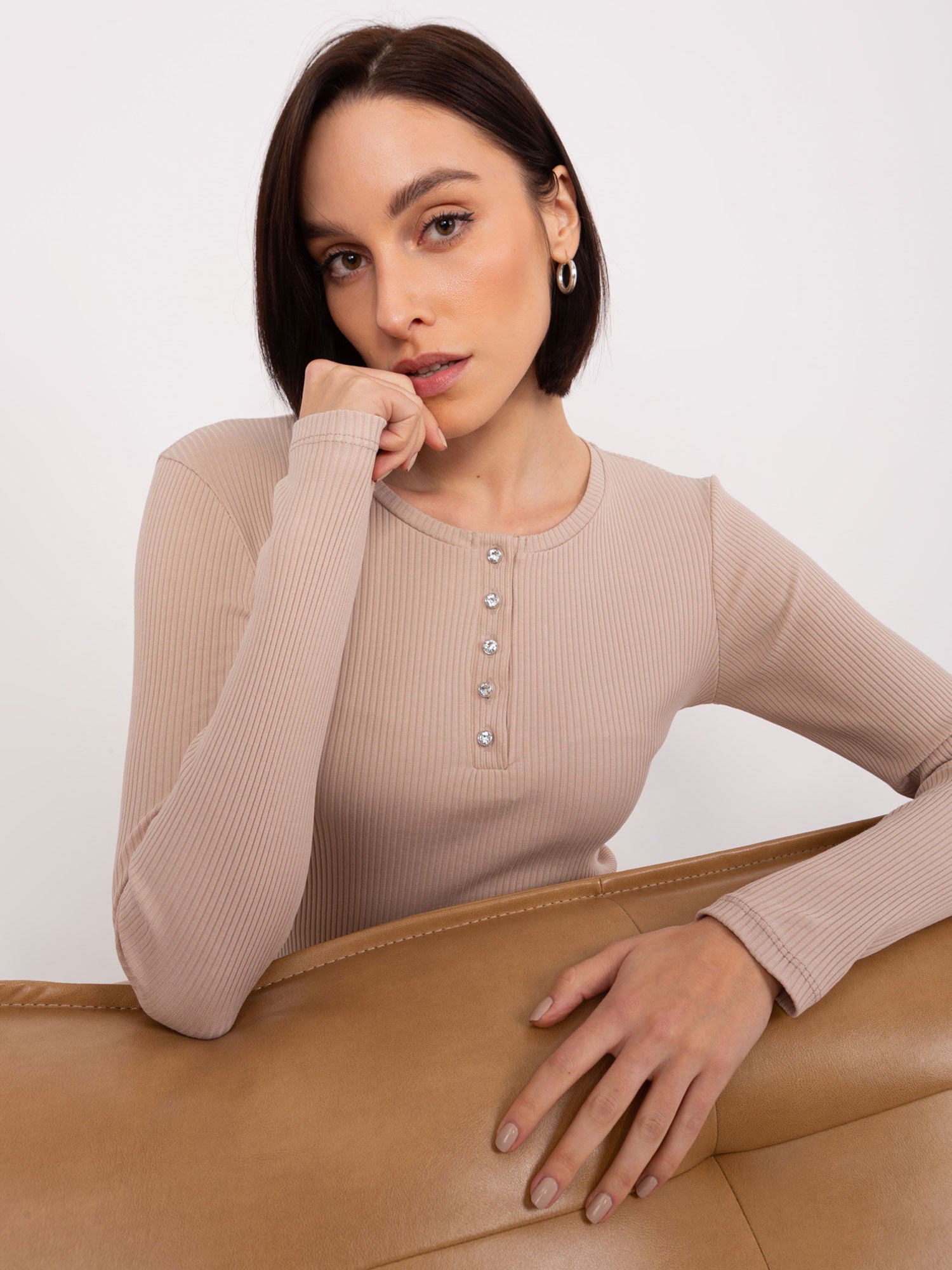 Beżowa bluzka z okrągłym dekoltem BASIC FEEL GOOD .