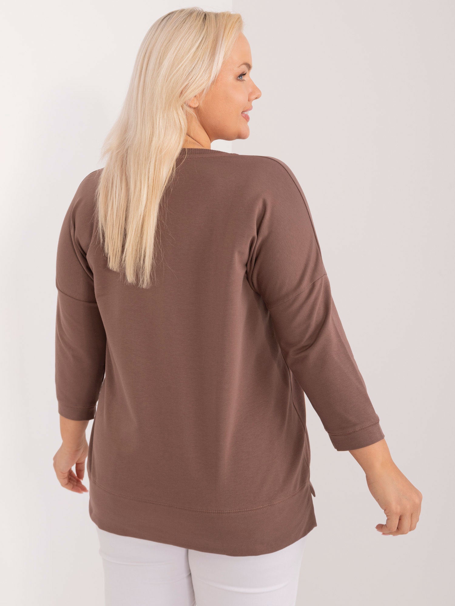 Wymiary bluzki w rozmiarze one size mierzone na płasko: szerokość pod pachami - 60 cm, długość rękawa - 46 cm, długość całkowita (przód) - 64 cm, długość całkowita (tył) - 71 cm.