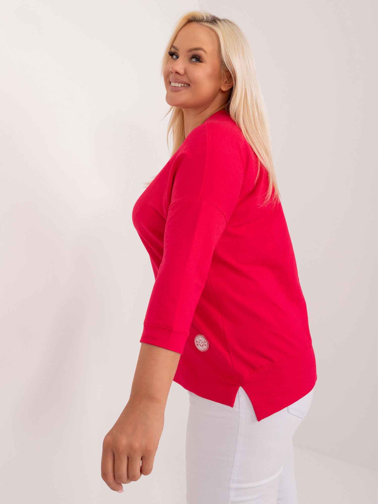 Wymiary bluzki w rozmiarze one size mierzone na płasko: szerokość pod pachami - 60 cm, długość rękawa - 46 cm, długość całkowita (przód) - 64 cm, długość całkowita (tył) - 71 cm.
