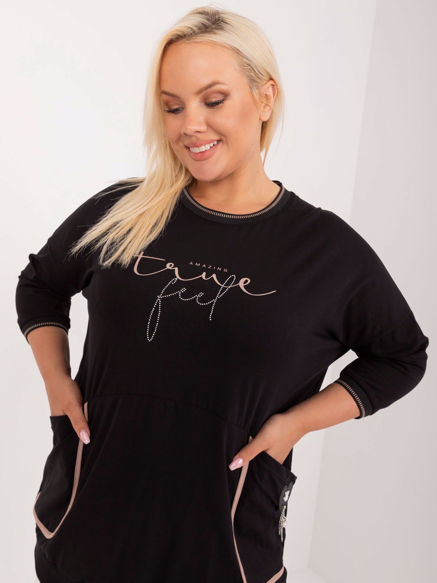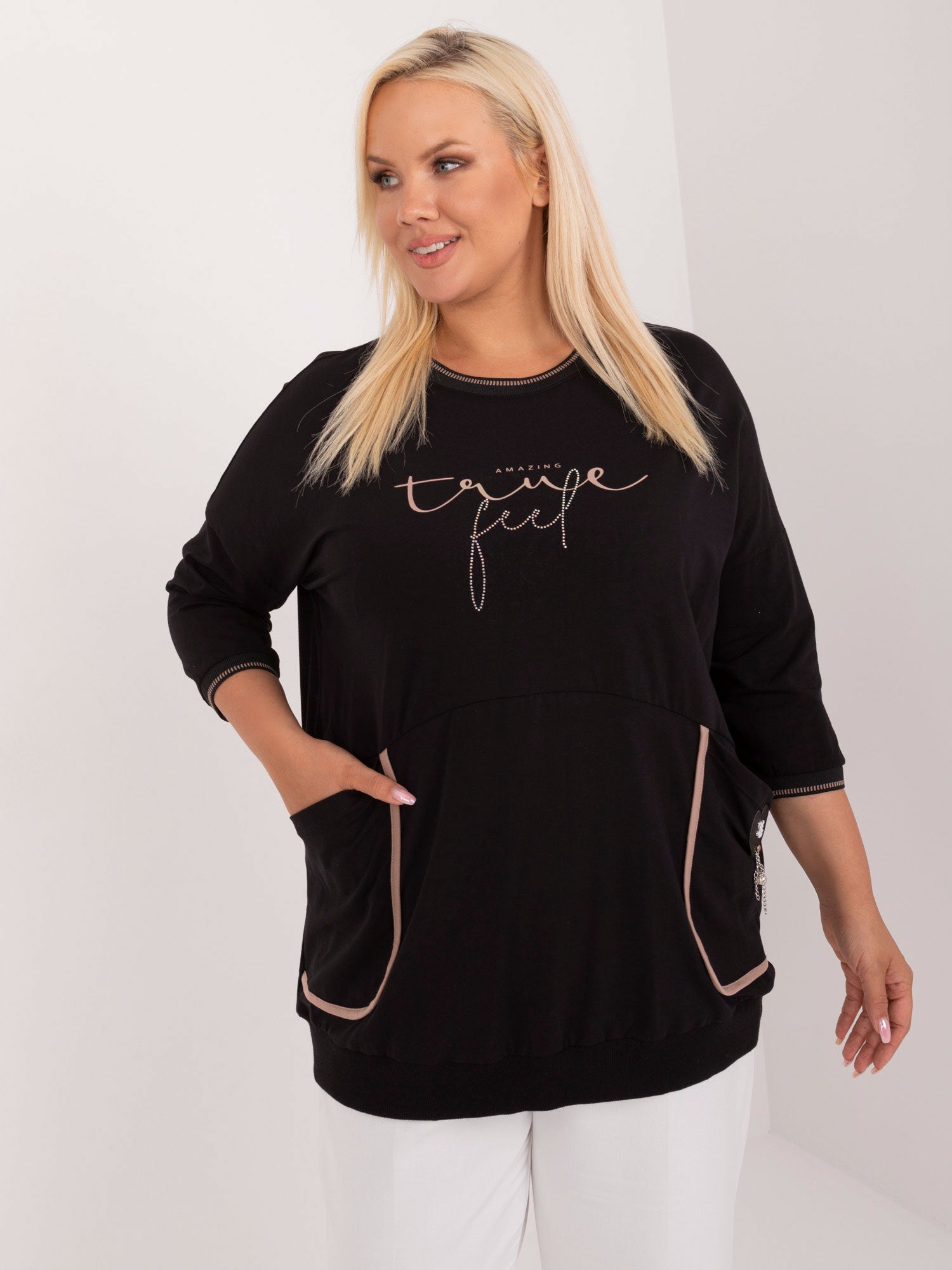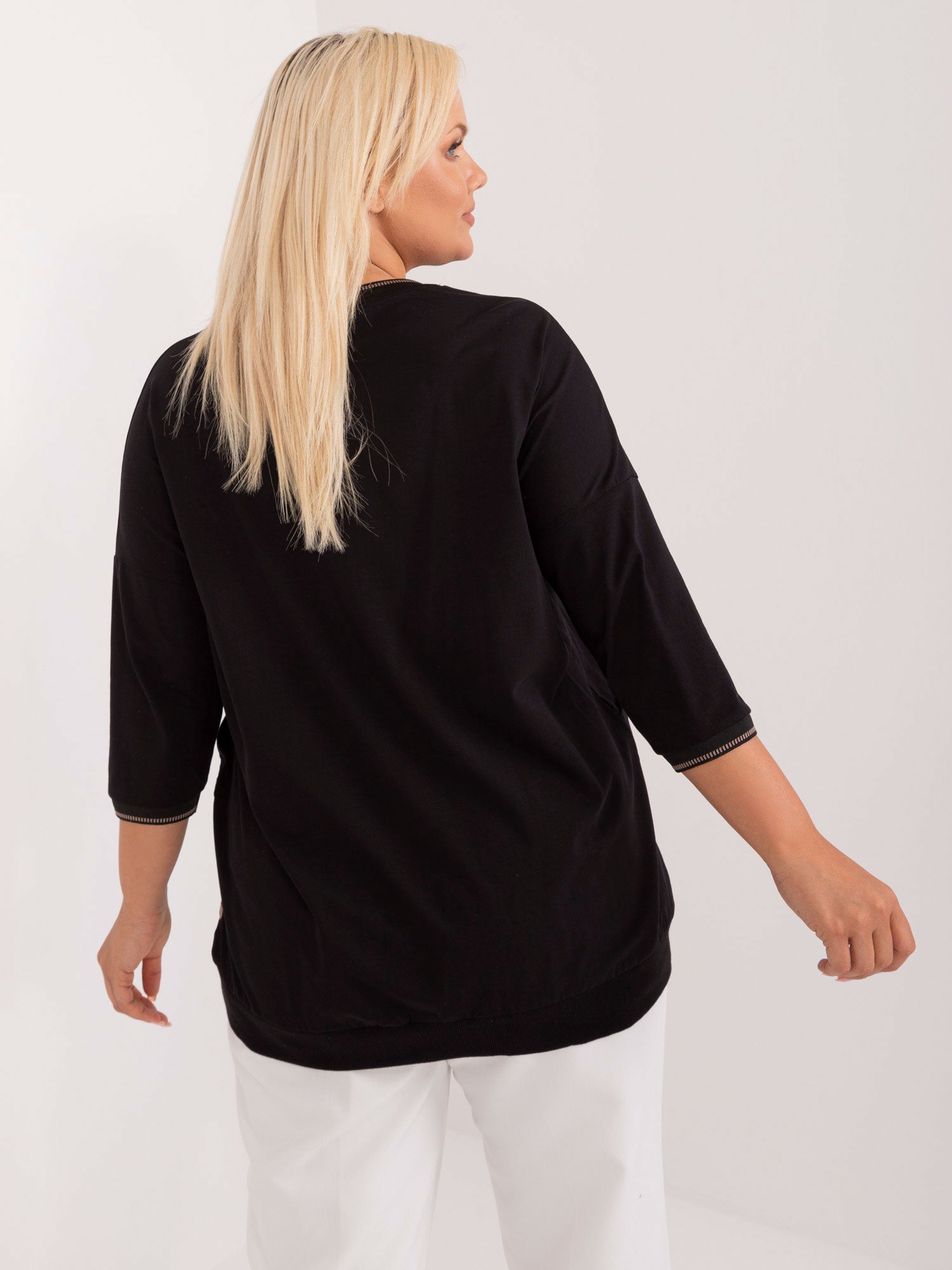 Wymiary bluzki w rozmiarze one size mierzone na płasko: szerokość pod pachami - 72 cm, długość rękawa - 42 cm, długość całkowita - 77 cm.