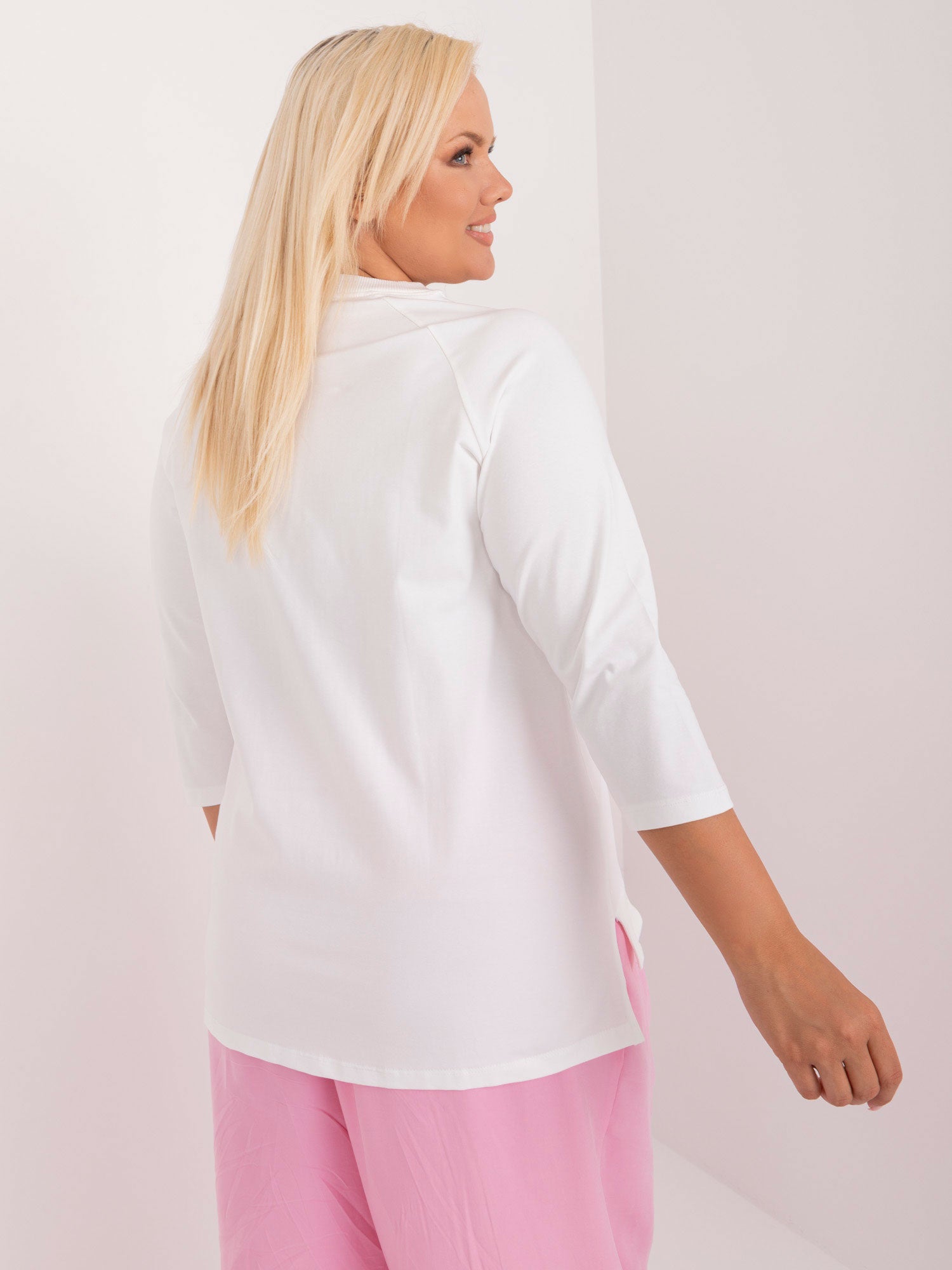 Wymiary bluzki w rozmiarze one size mierzone na płasko: szerokość pod pachami - 62 cm, długość rękawa - 46 cm, długość całkowita (przód) - 68 cm, długość całkowita (tył) - 74 cm.