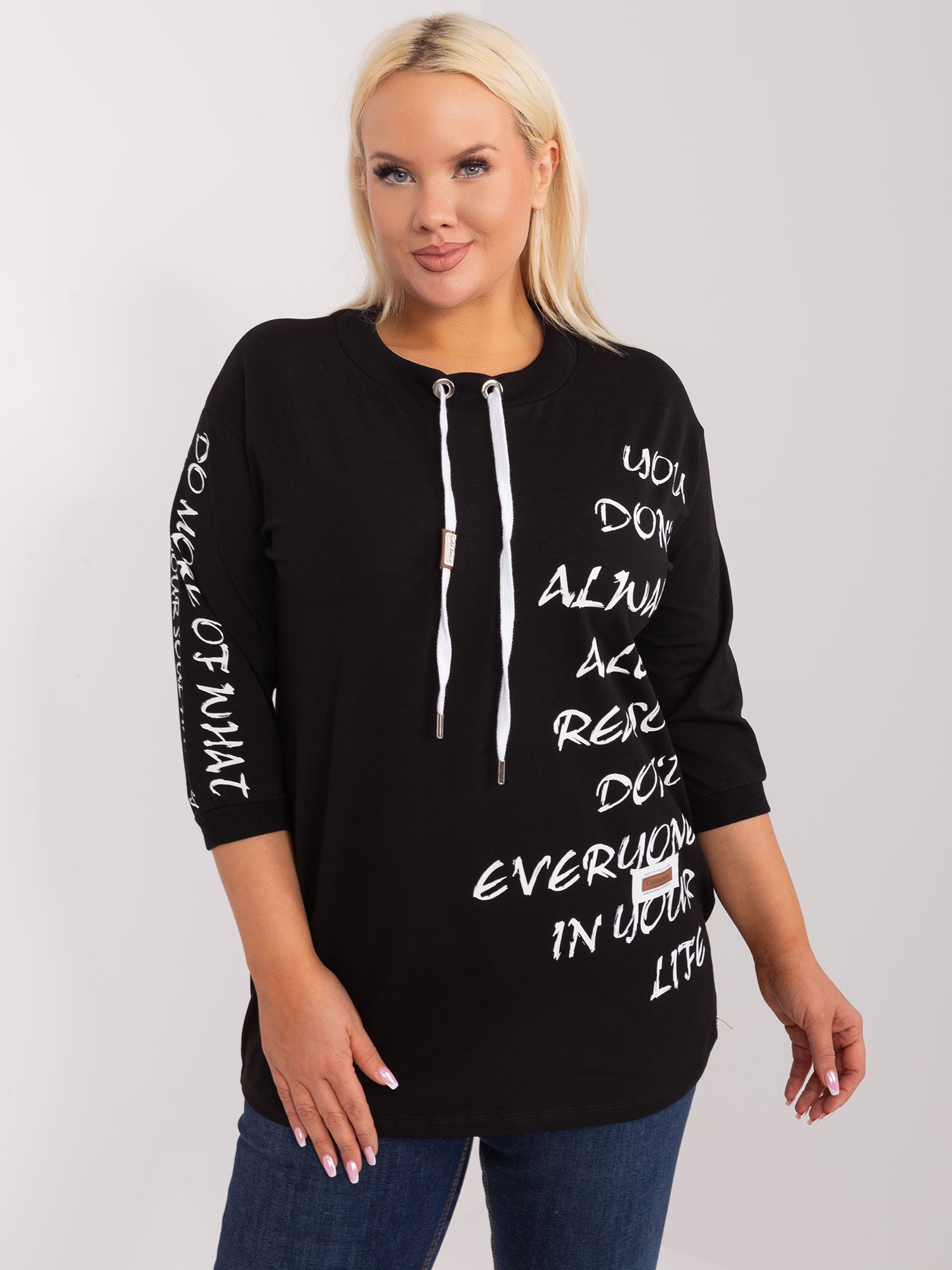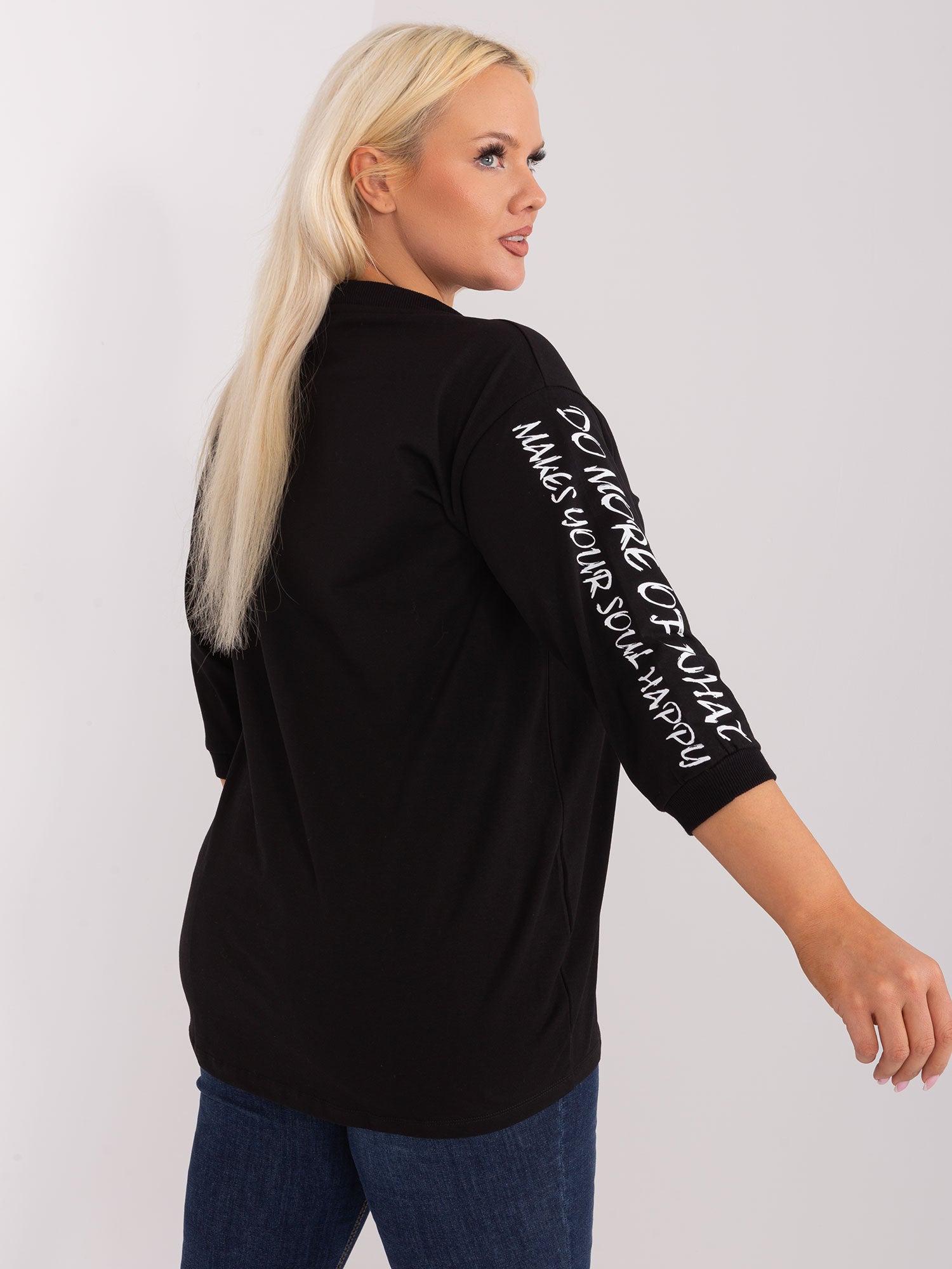 Wymiary bluzki w rozmiarze one size mierzone na płasko: szerokość pod pachami - 60 cm, długość rękawa - 41 cm, długość całkowita - 75 cm .