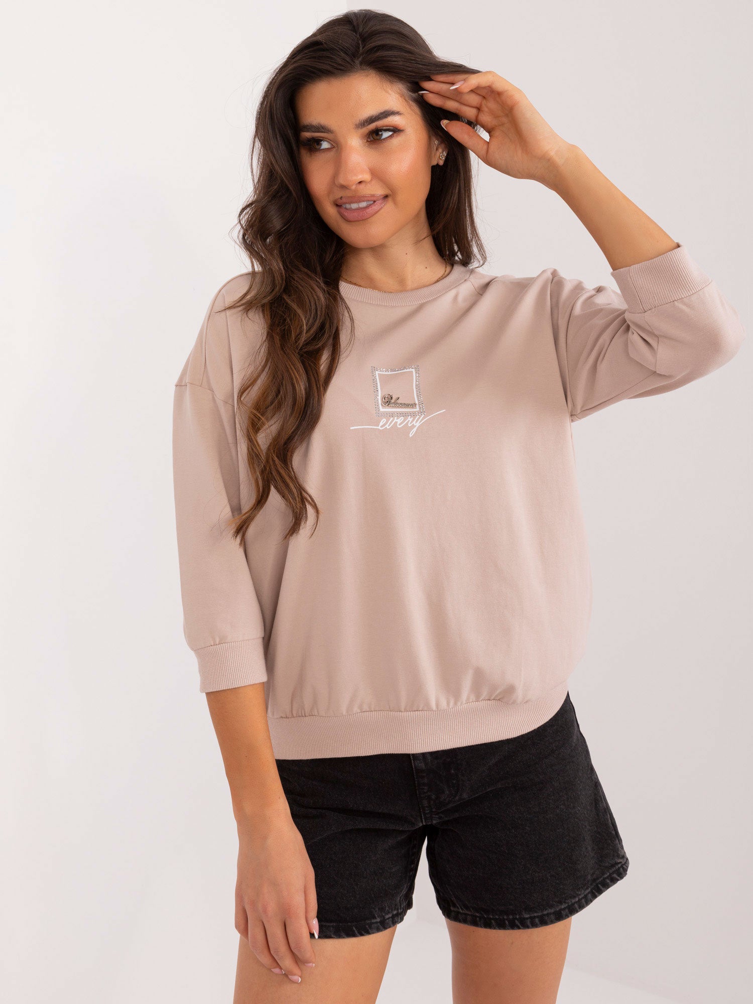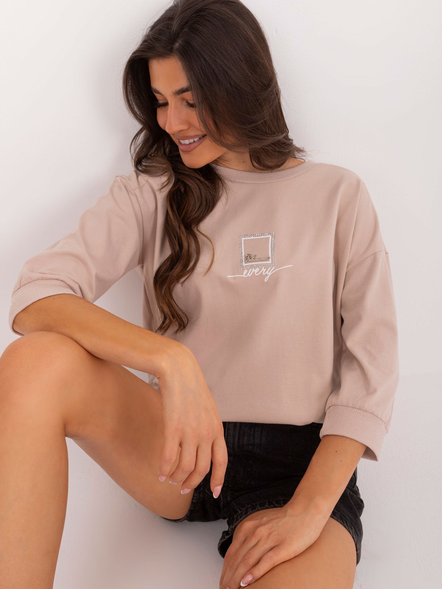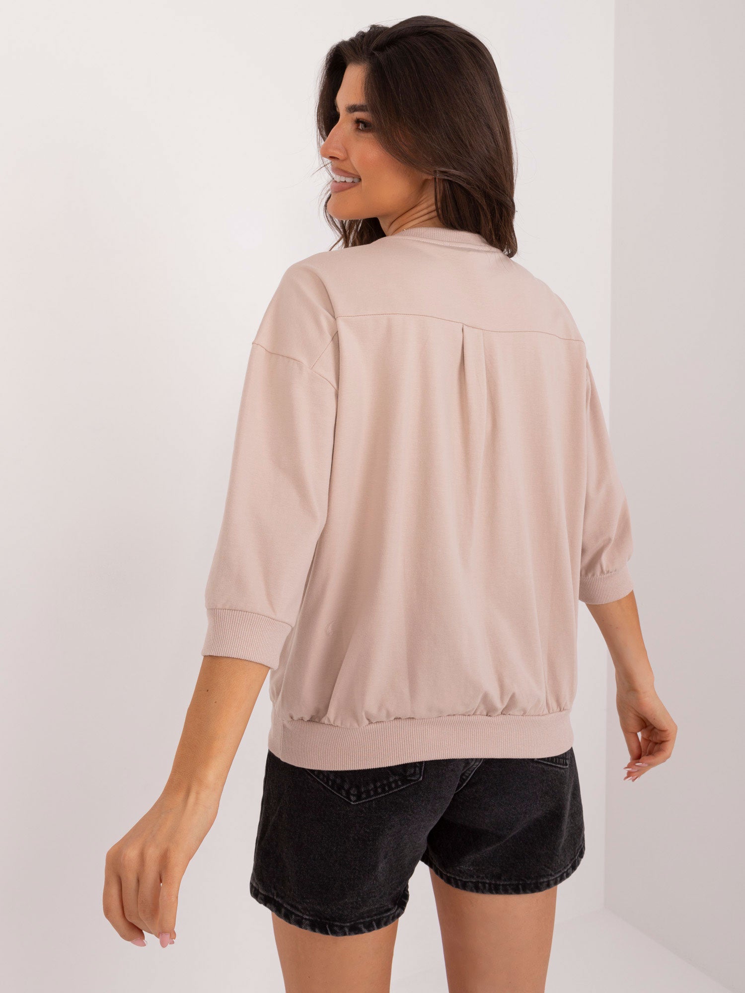Wymiary bluzki w rozmiarze one size mierzone na płasko: szerokość bluzki pod pachami - 58 cm, długość rękawa - 44 cm, długość całkowita - 57 cm.