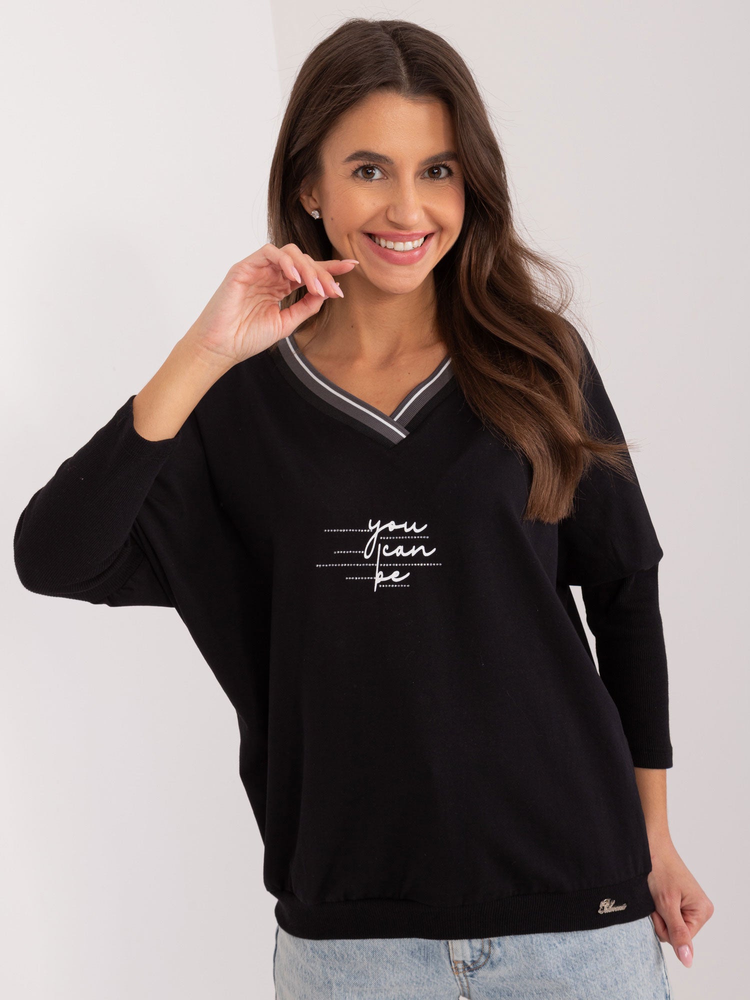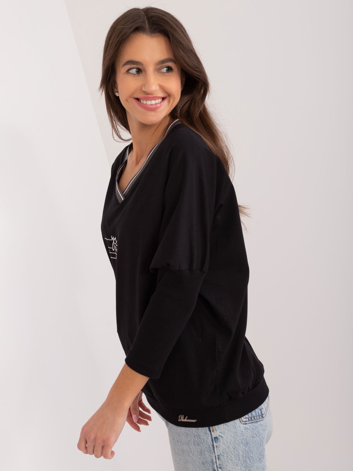 Wymiary bluzki w rozmiarze one size mierzone na płasko: szerokość pod pachami - 69 cm, długość rękawa - 44 cm, długość całkowita - 61 cm.