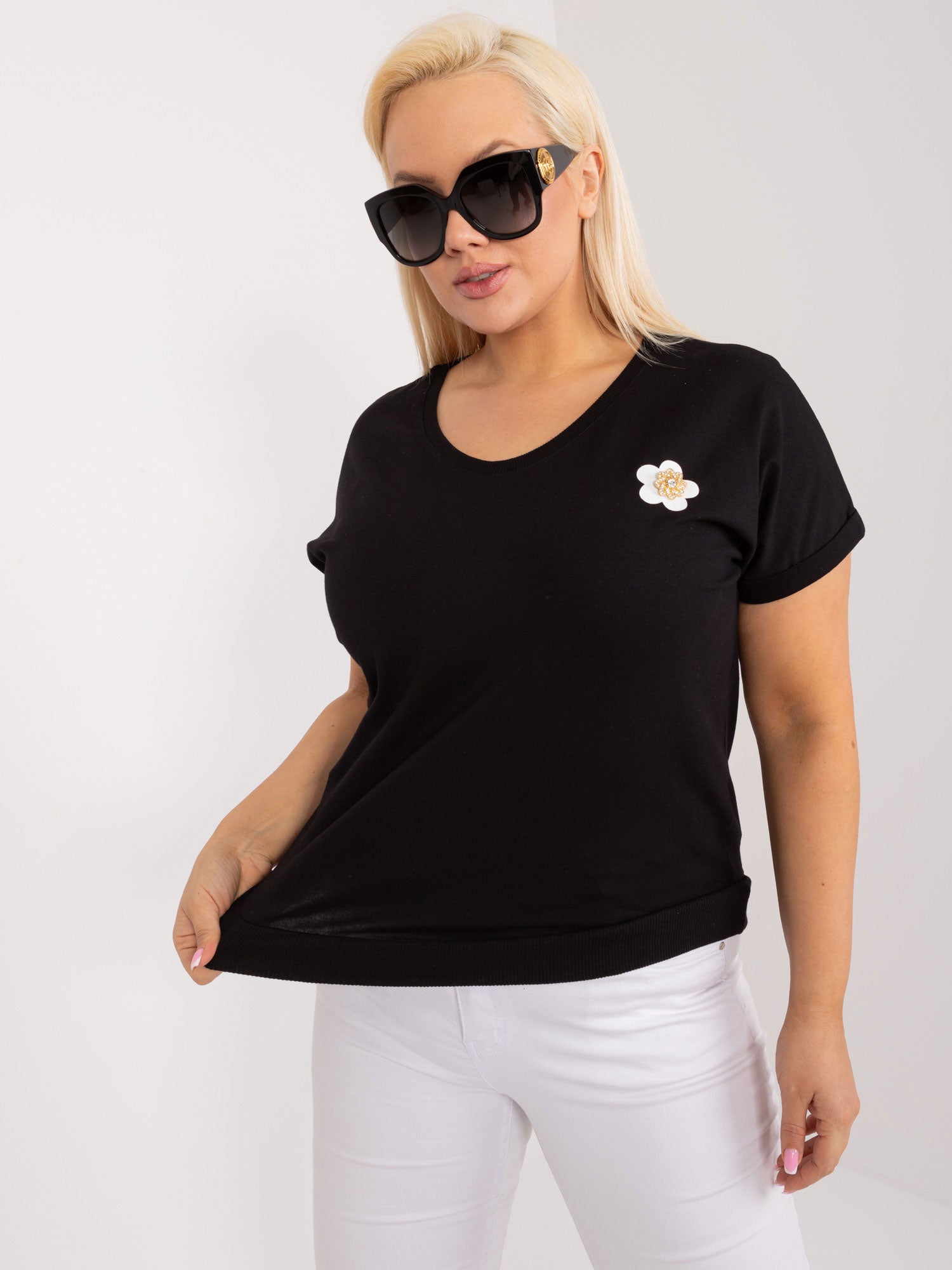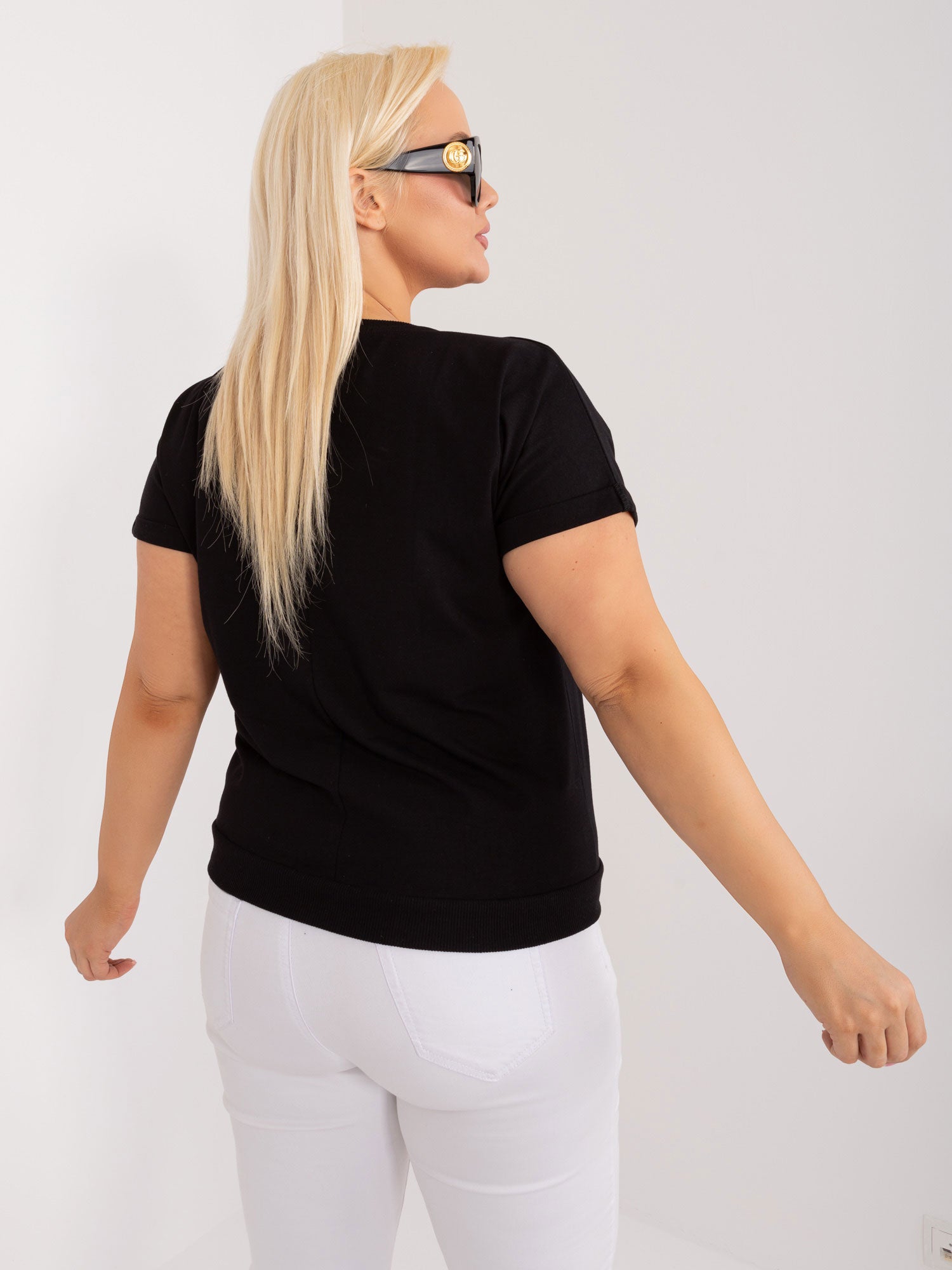 Wymiary bluzki w rozmiarze one size mierzone na płasko: szerokość pod pachami - 60 cm, długość całkowita - 60 cm.
