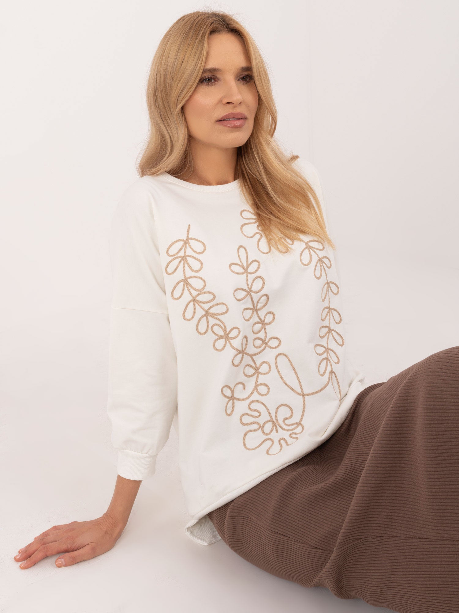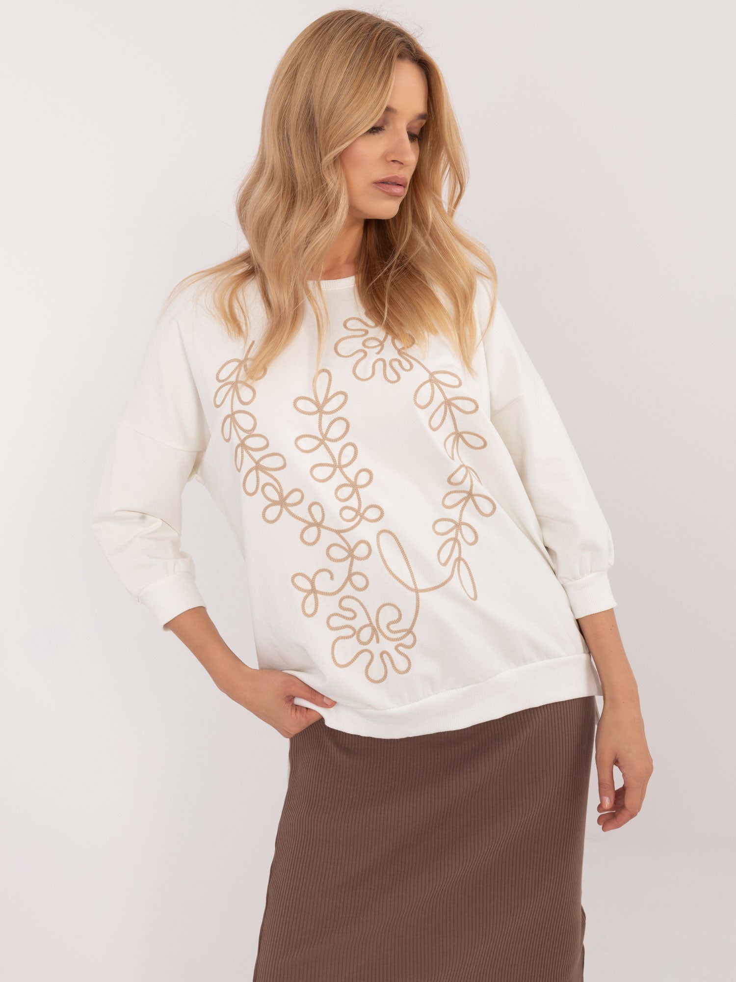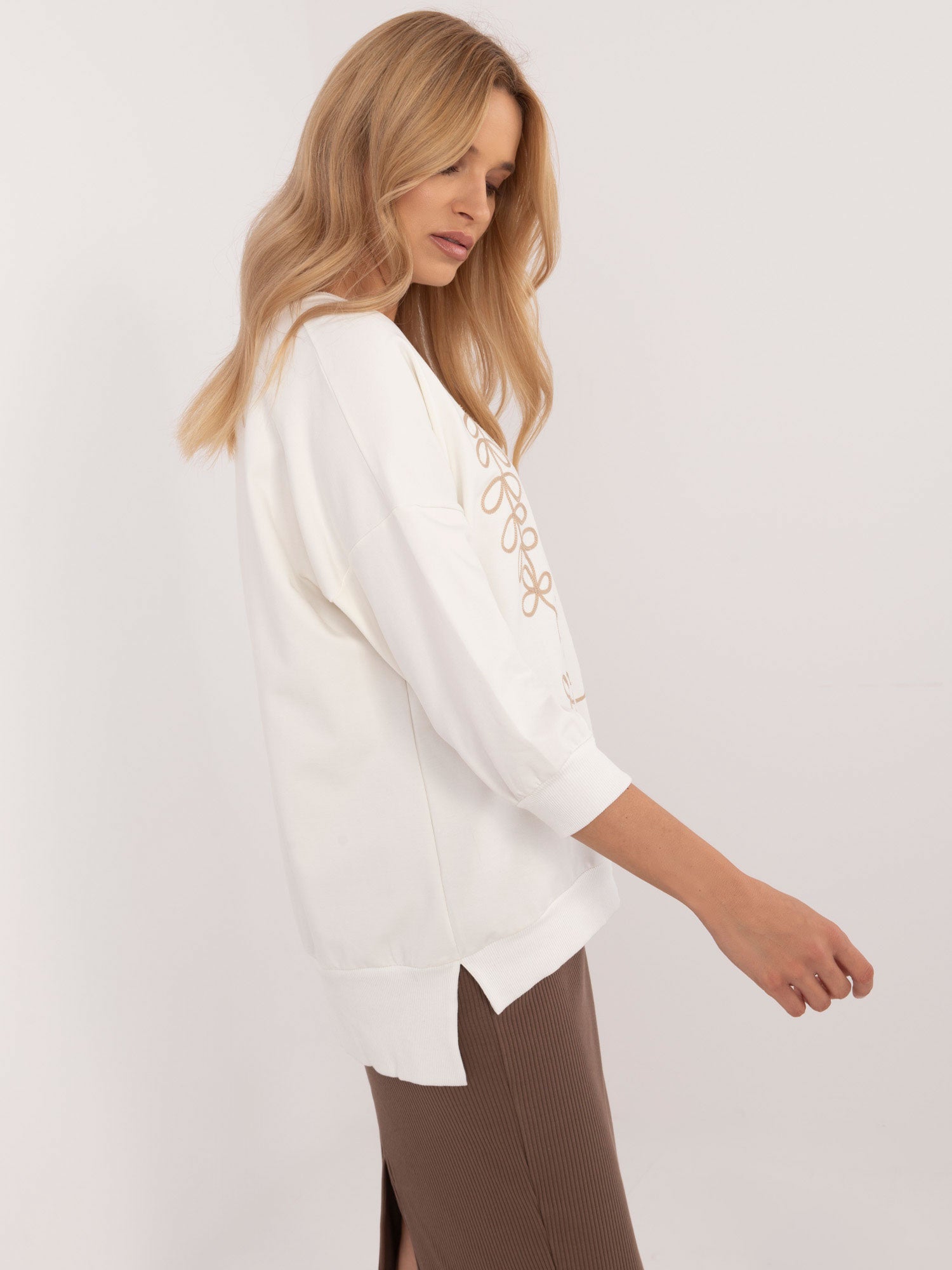 Wymiary bluzki w rozmiarze one size mierzone na płasko: szerokość pod pachami - 63 cm, długość rękawa - 43 cm, długość całkowita (przód)- 64 cm, długość całkowita (tył) - 70 cm.