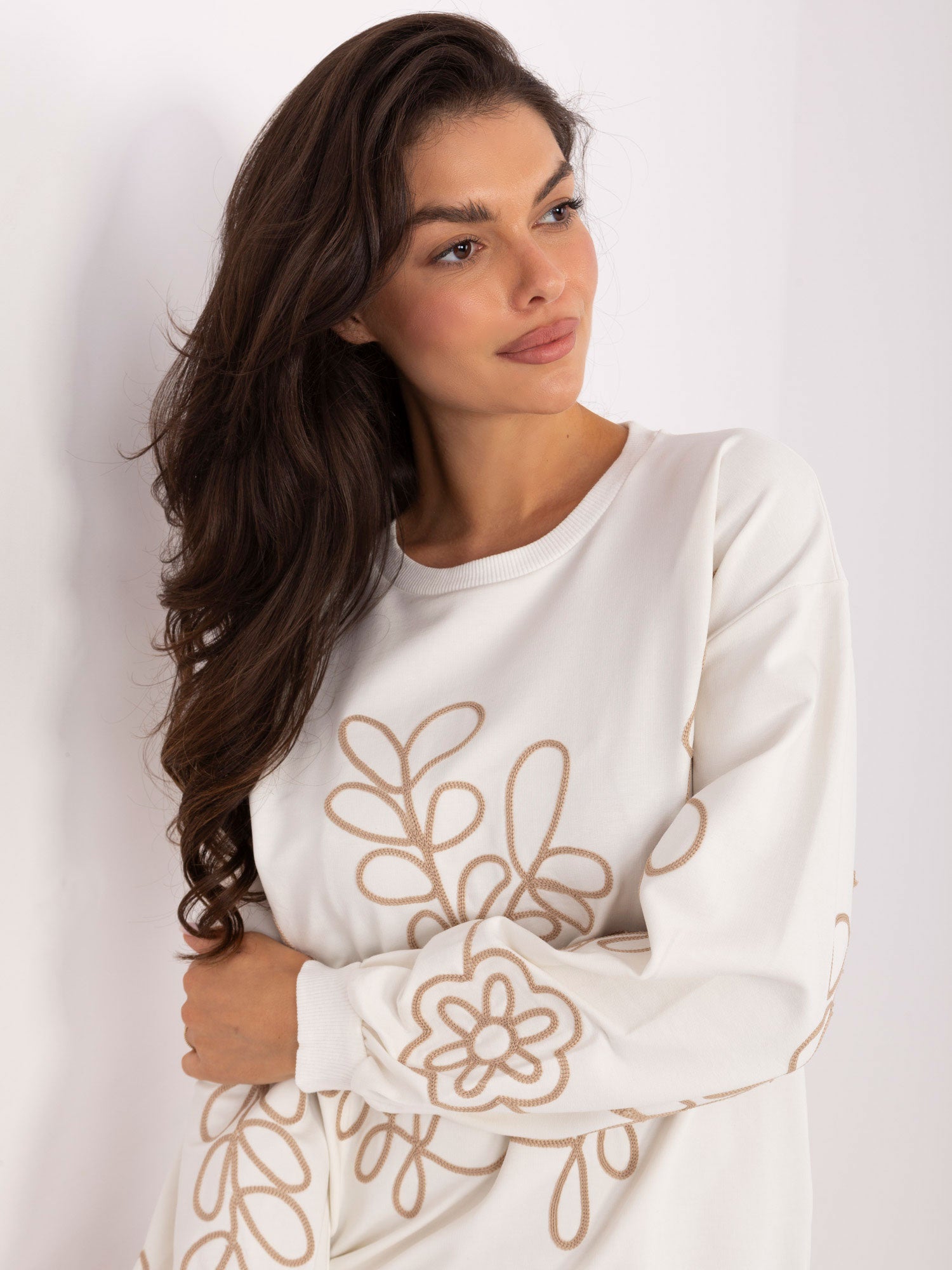 Wymiary bluzki w rozmiarze one size mierzone na płasko: szerokość pod pachami - 59 cm, długość rękawa - 52 cm (od szwu), szerokość w biodrach - 44 cm, długość całkowita - 63 cm.