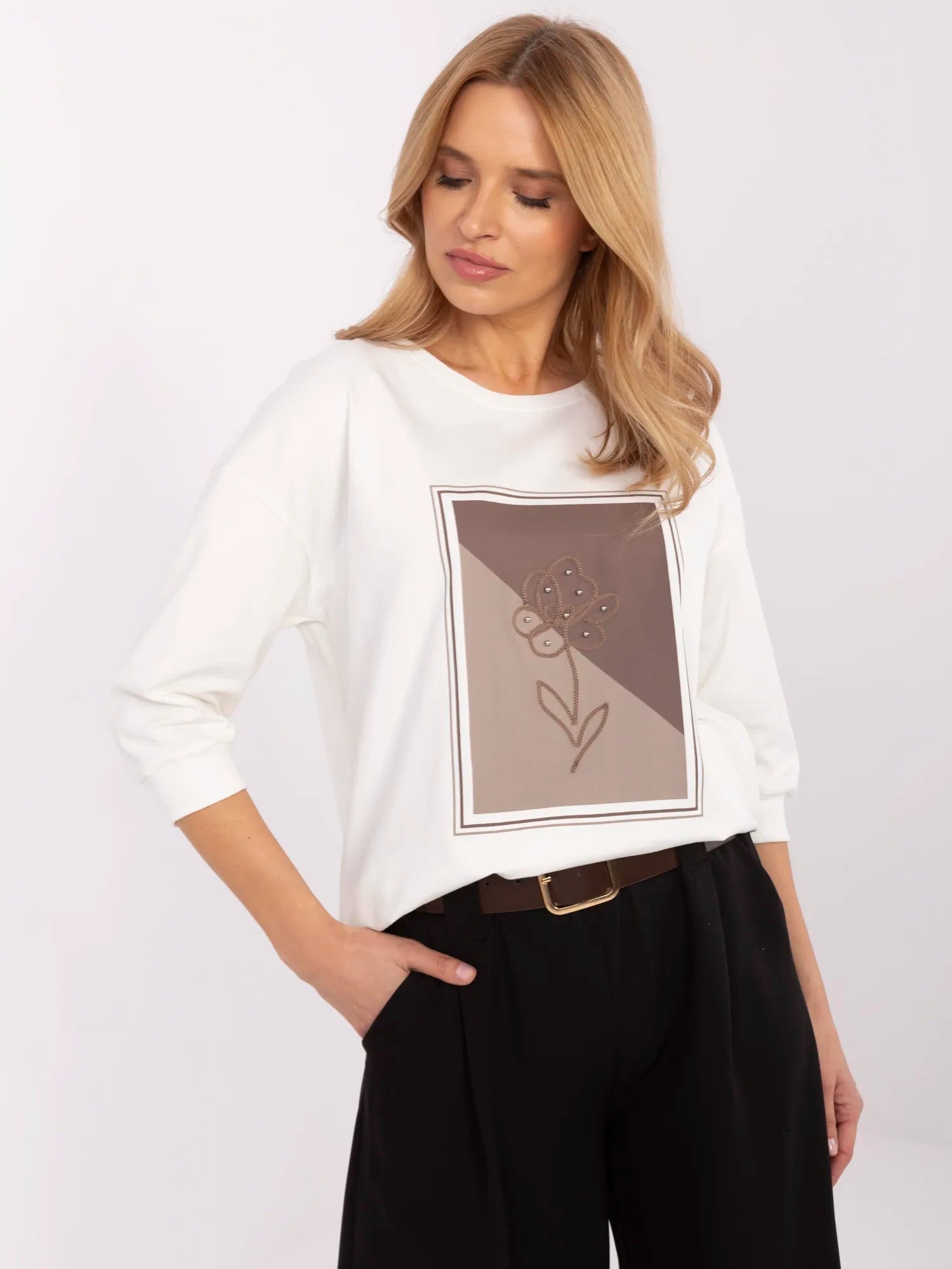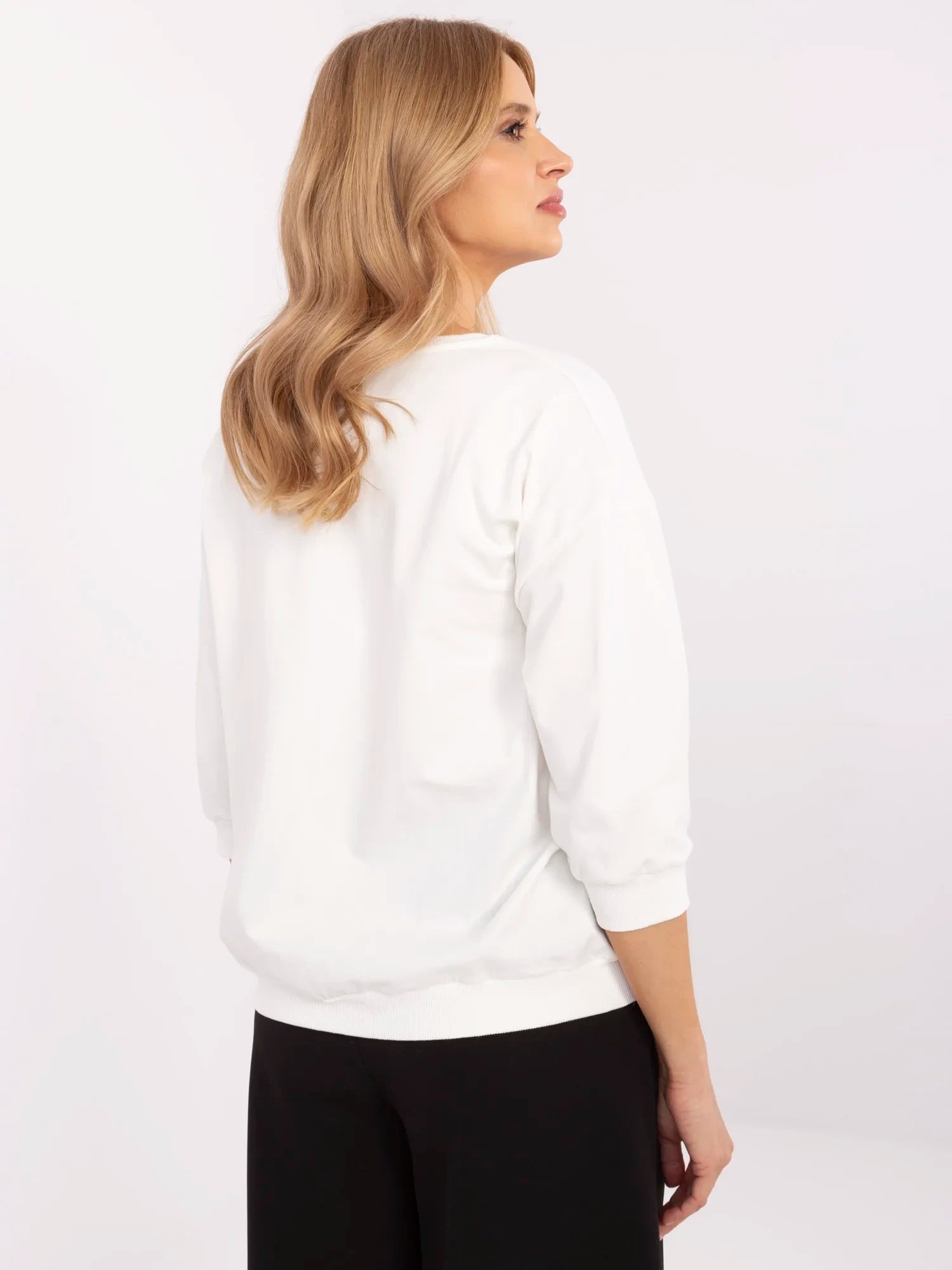 Wymiary bluzki w rozmiarze one size mierzone na płasko: szerokość pod pachami - 59 cm długość rękawa - 33 cm (od szwu), szerokość w biodrach - 52 cm, długość całkowita - 61 cm.