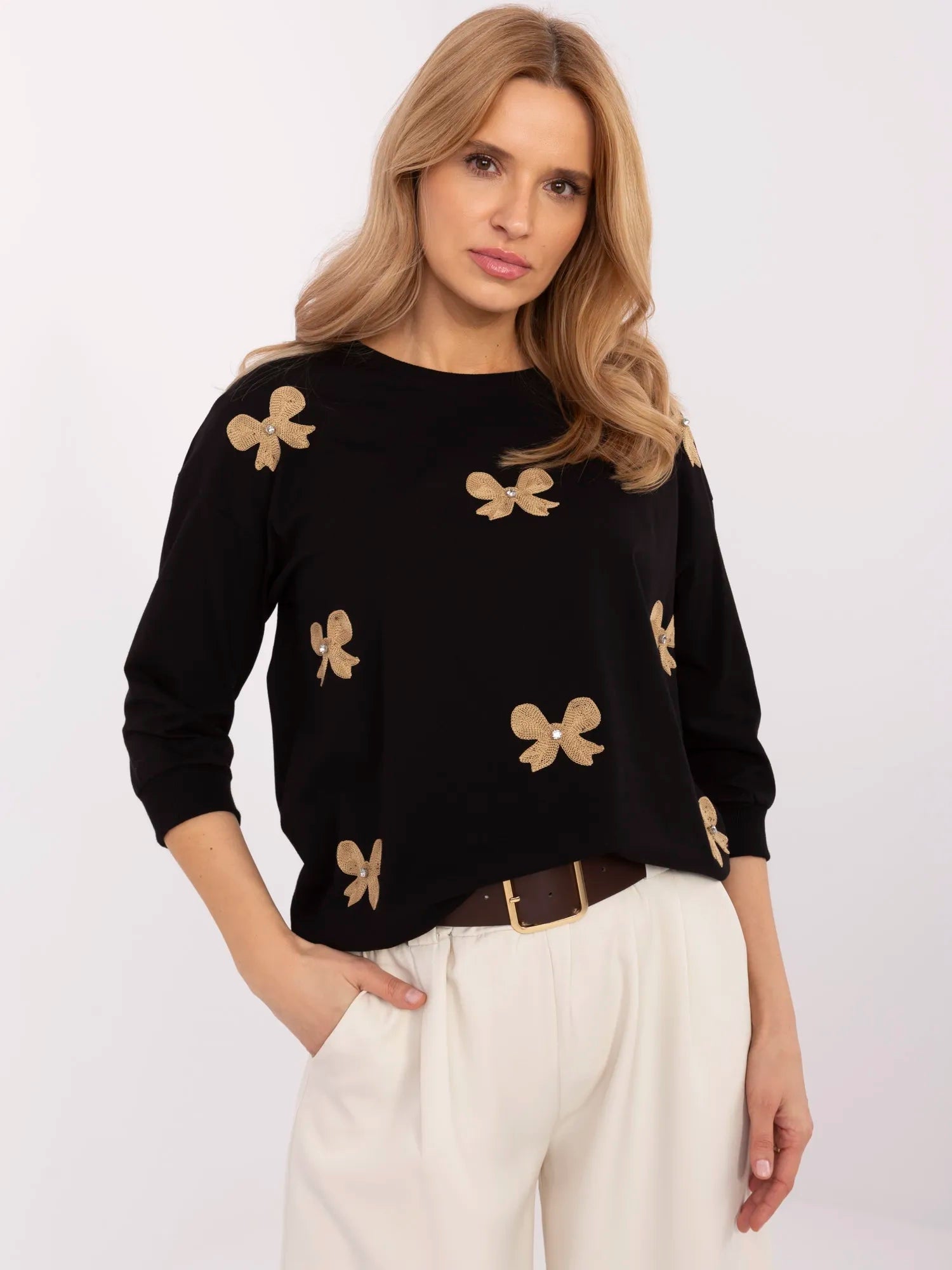 Wymiary bluzki w rozmiarze one size mierzone na płasko: szerokość bluzy pod pachami - 58 cm długość rękawa - 35 cm (od szwu), szerokość w biodrach - 50 cm, długość bluzki - 64 cm.