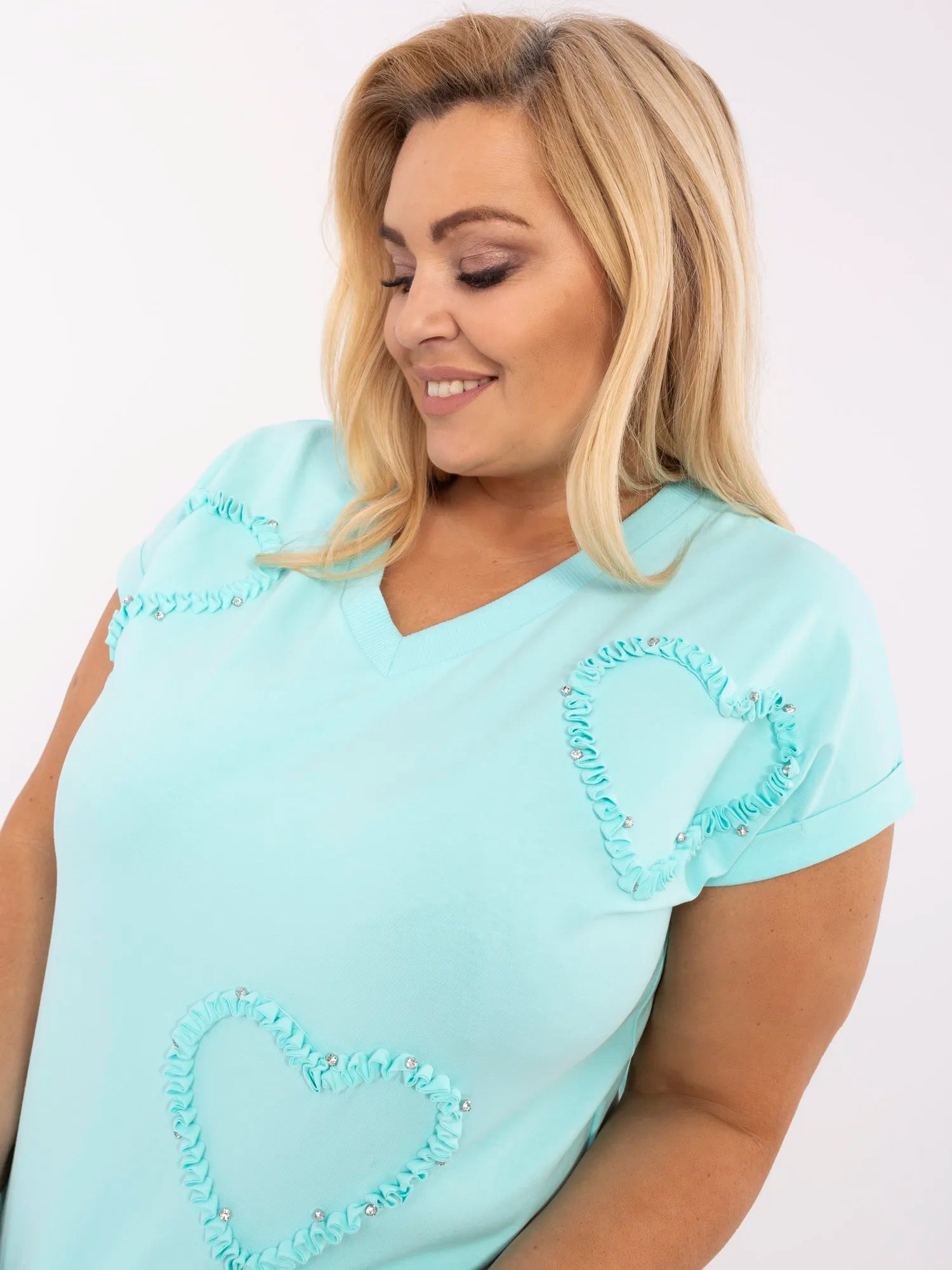 Wymiary bluzki w rozmiarze one size mierzone na płasko: szerokość pod pachami - 58 cm, długość rękawa - 23 cm (od szwu), szerokość w biodrach - 53 cm, długość całkowita - 62 cm (przód), długość całkowita - 68 cm (tył) .