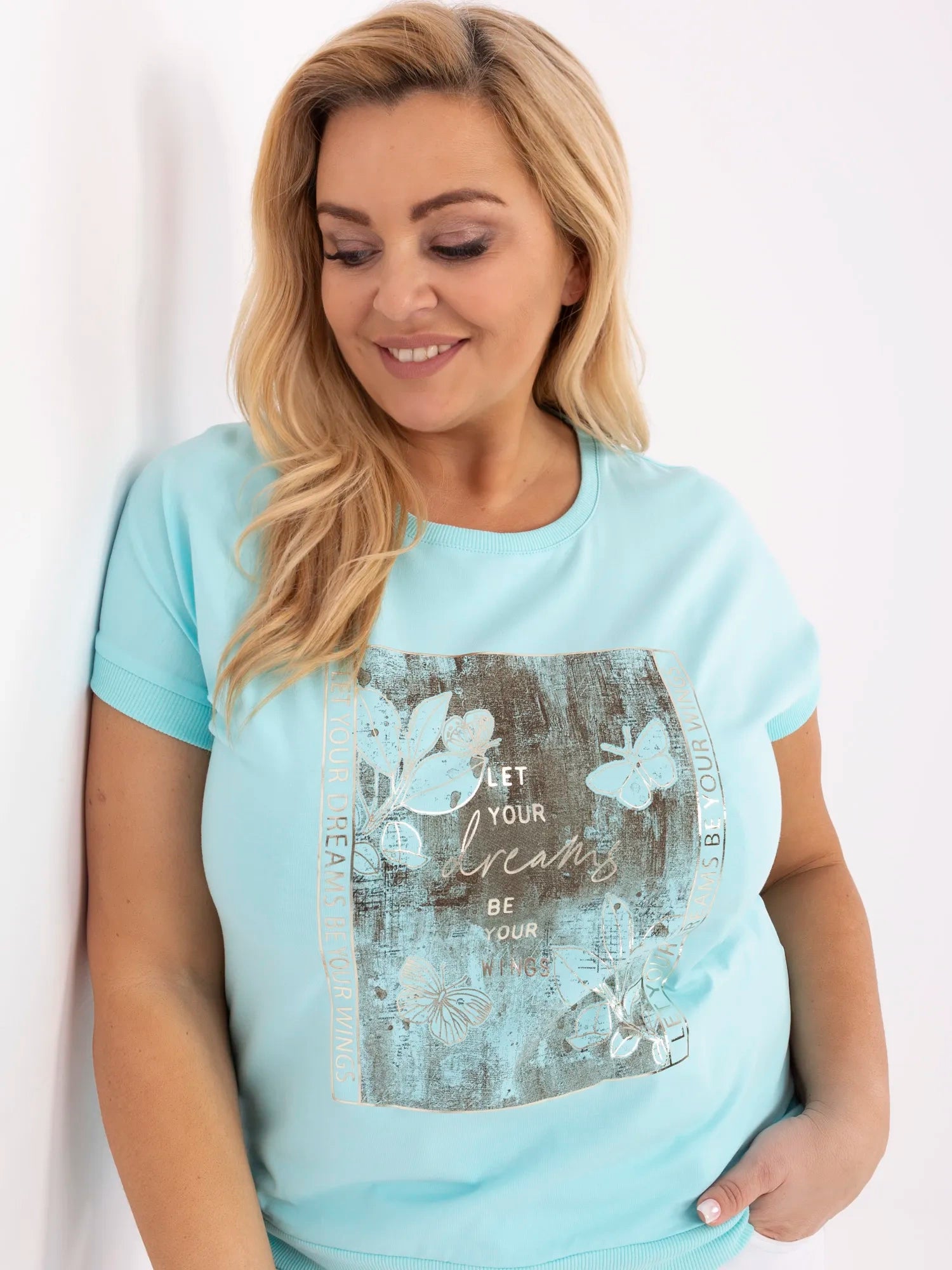 Wymiary bluzki w rozmiarze one size mierzone na płasko: szerokość pod pachami - 63 cm, długość rękawa - 26 cm (od szwu), szerokość w biodrach - 56 cm, długość całkowita - 63 cm.