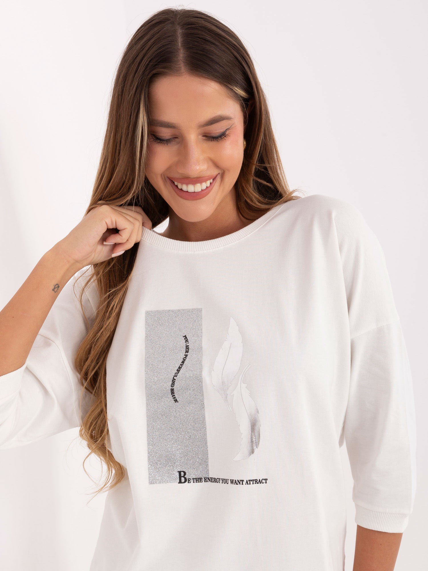 Wymiary bluzki w rozmiarze one size mierzone na płasko: szerokość  pod pachami - 65 cm długość rękawa - 29 cm (od szwu), szerokość w biodrach - 53 cm, długość całkowita - 70 cm.