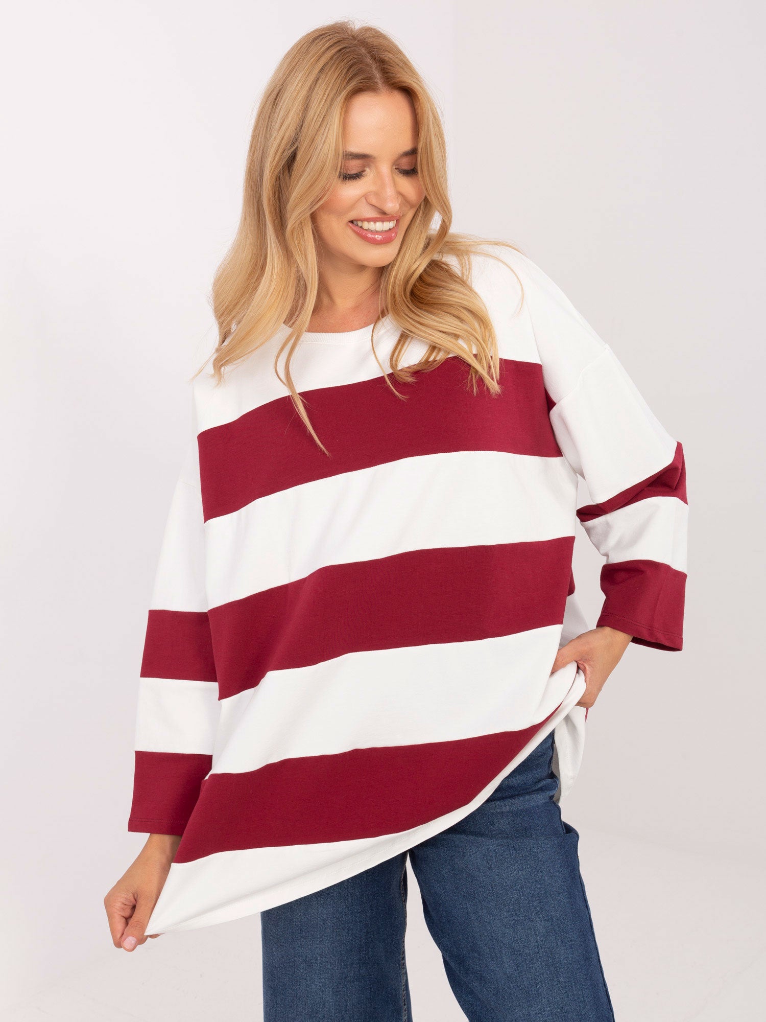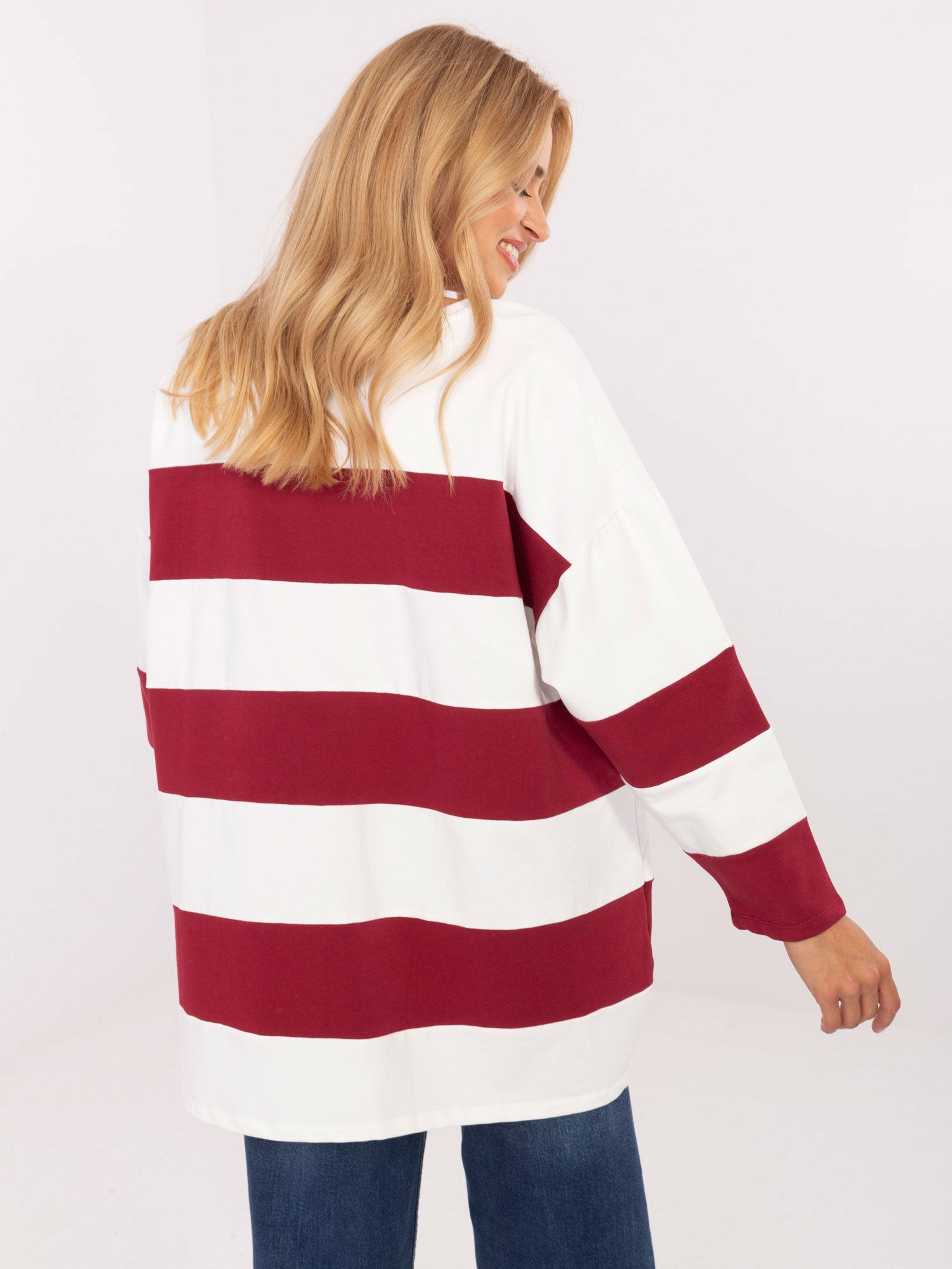 Wymiary bluzki w rozmiarze one size mierzone na płasko: szerokość pod pachami - 71 cm, długość rękawa - 43 cm (od szwu), długość całkowita - 75 cm, szerokość w biodrach - 76 cm.