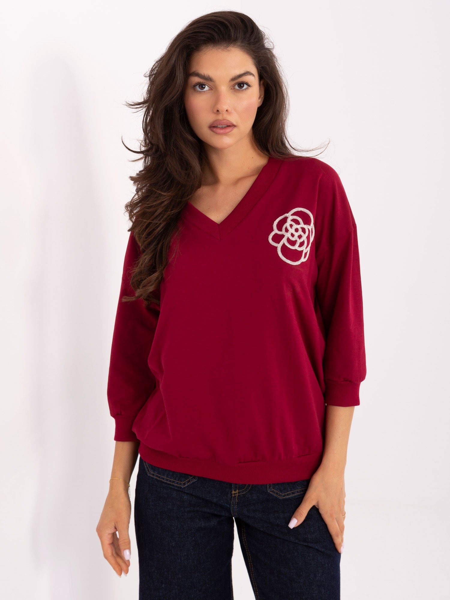 Wymiary bluzki w rozmiarze one size mierzone na płasko: szerokość pod pachami - 61 cm, długość rękawa - 33 cm (od szwu), szerokość w biodrach - 43 cm, długość całkowita - 64 cm .