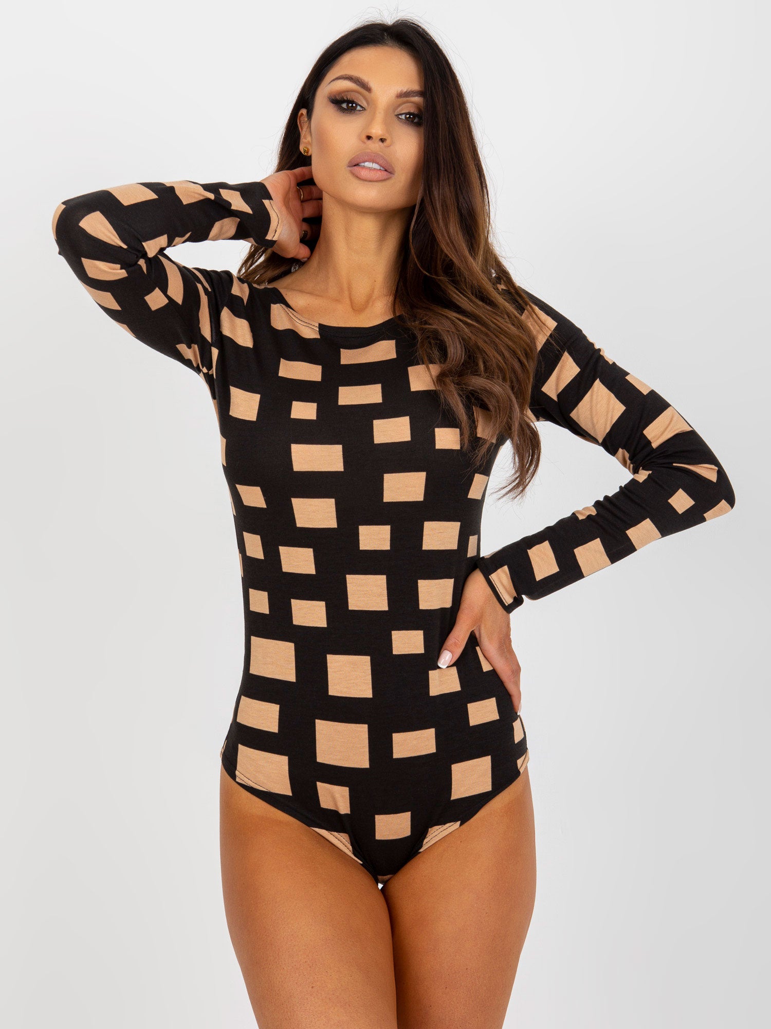 Czarno-camelowe body w geometryczny wzór z wiskozy .