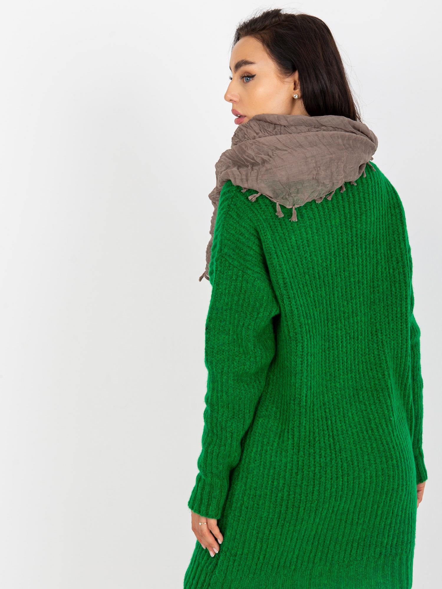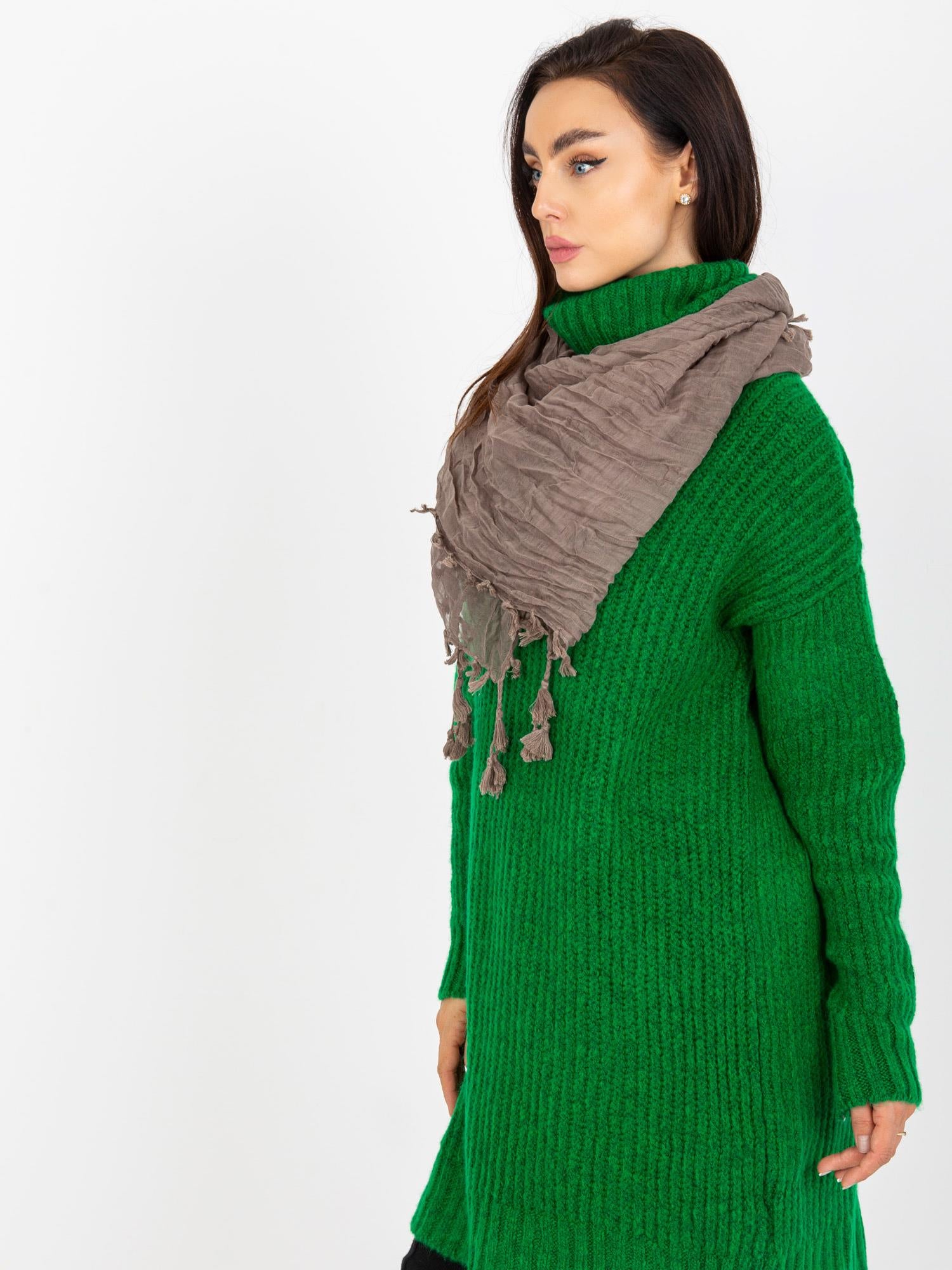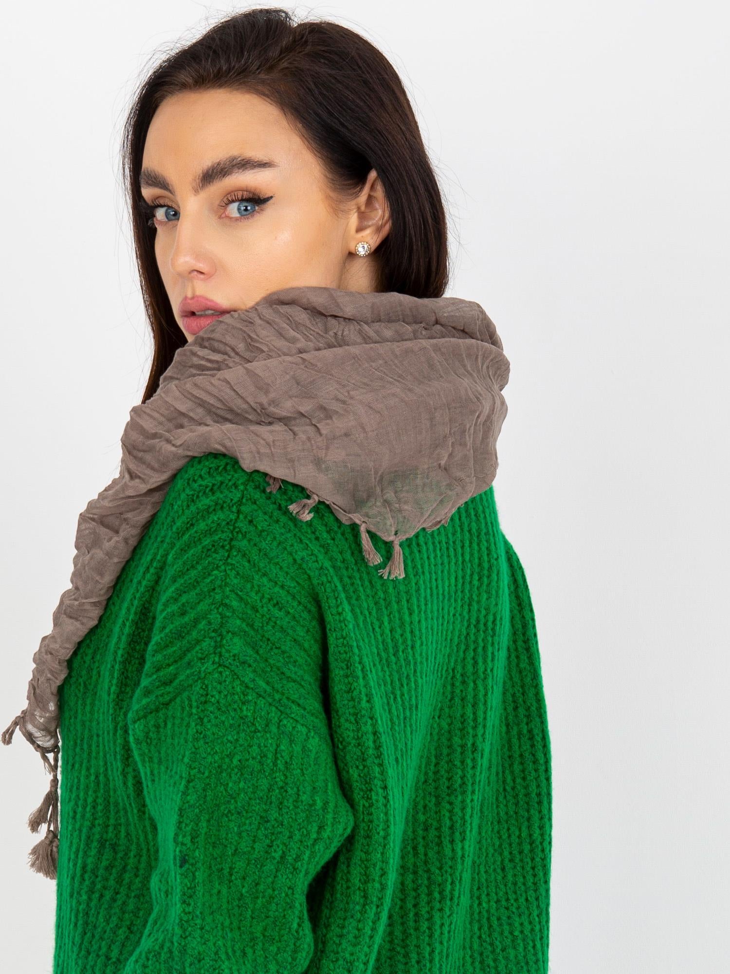 Ciemnobrązowa chusta z ozdobnym wykończeniem .