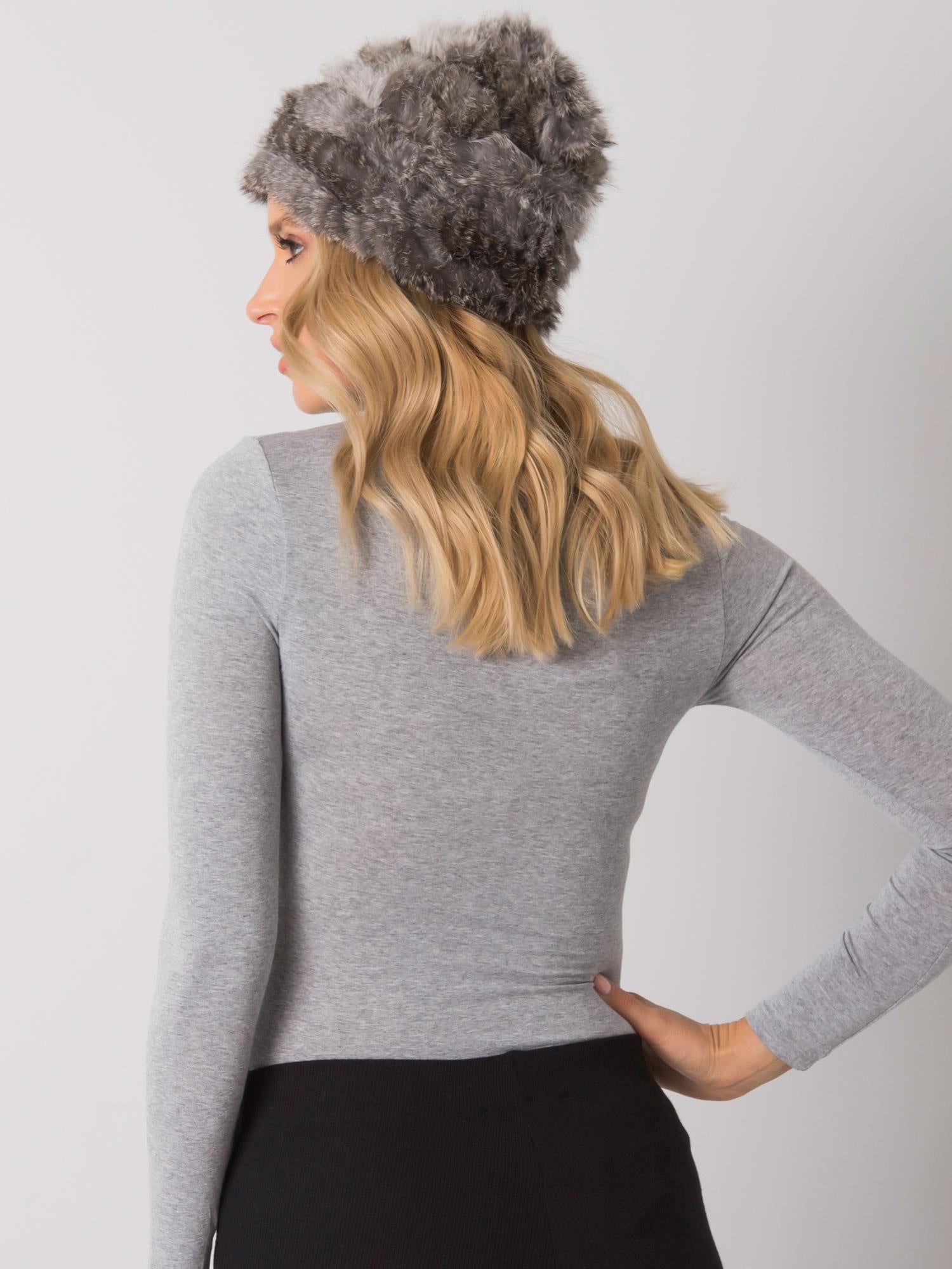 Futrzana melanżowa czapka ciemnoszara.